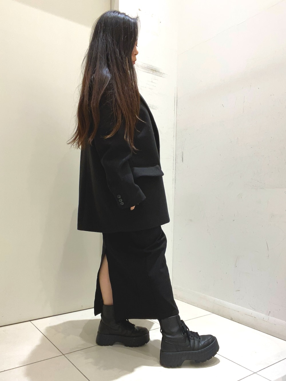 タイトスカートとジャケットでカッコ良さをプラスしました。