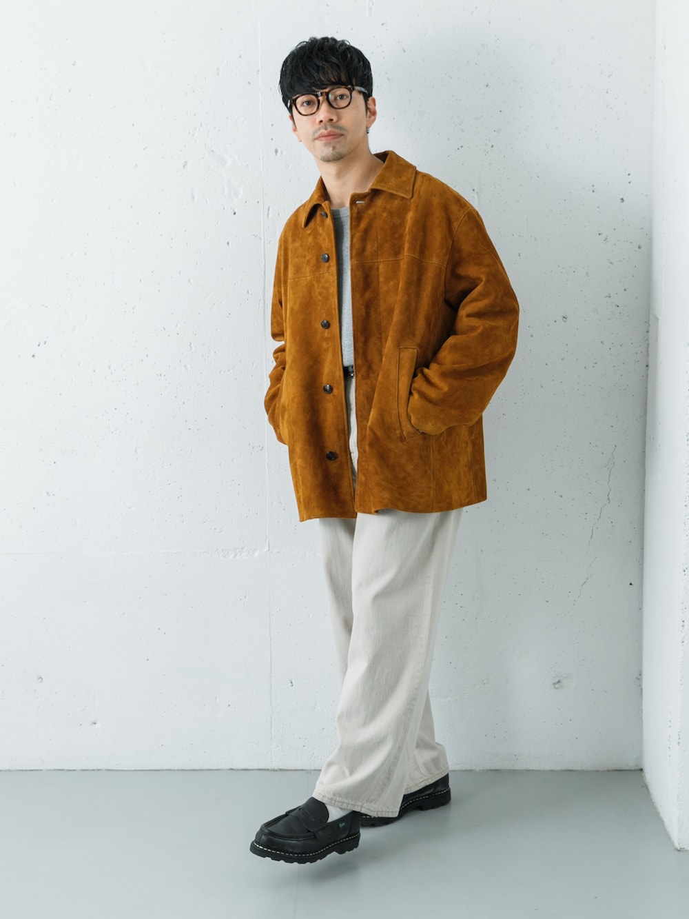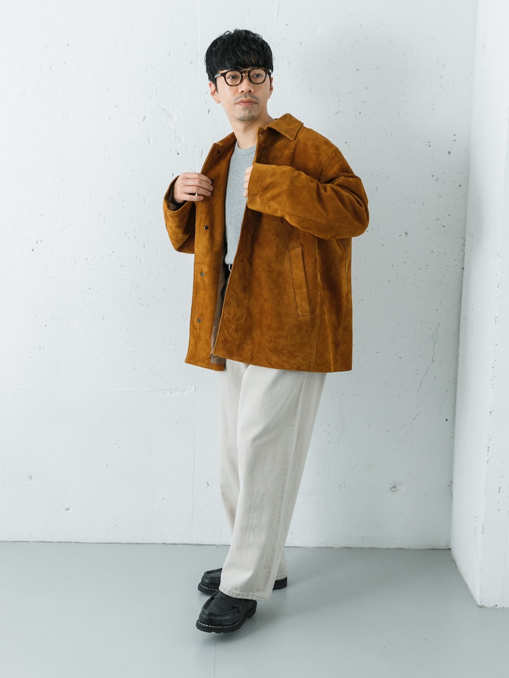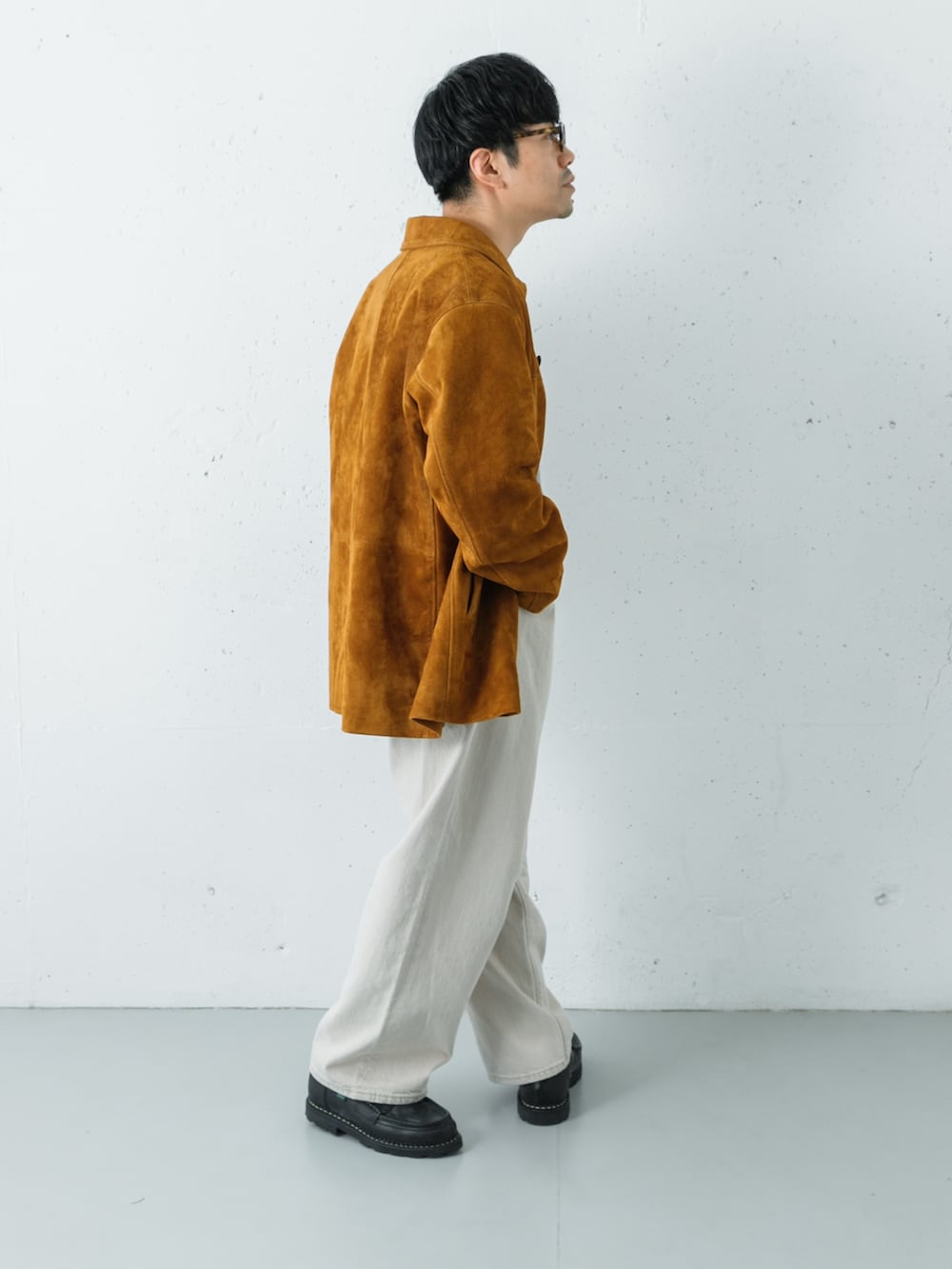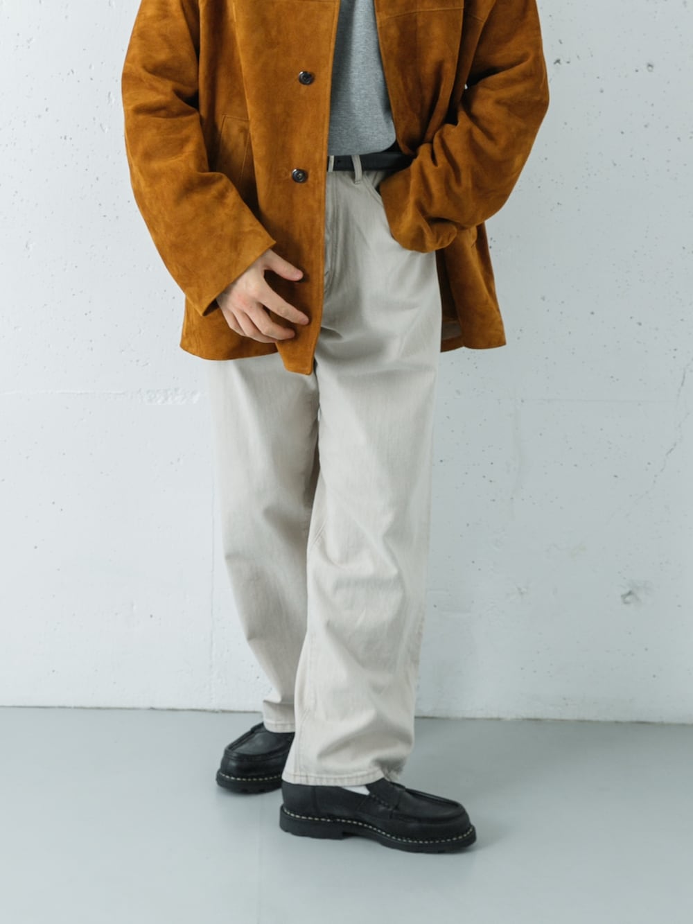パンツはワイドテーパード型で、太さはあるもののスッキリ見えするのが特徴です。