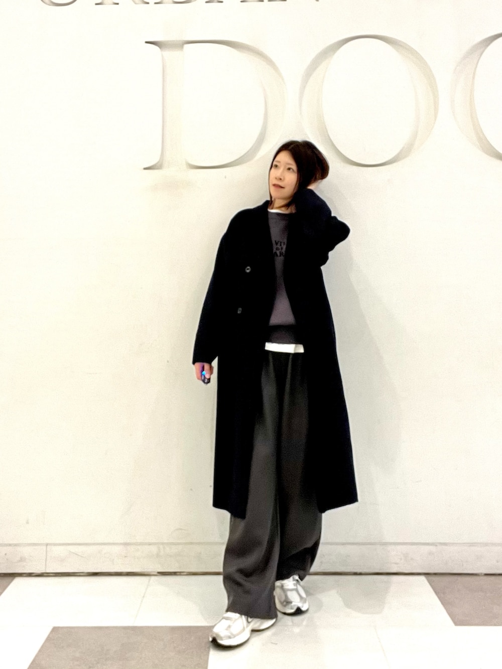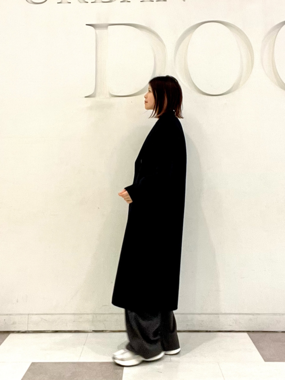 しっかりと長さのあるロングコートは裏地がないので軽い着心地。見た目以上に中に着込めます☃️羽織るだけでこなれ感の出る万能コートです!
