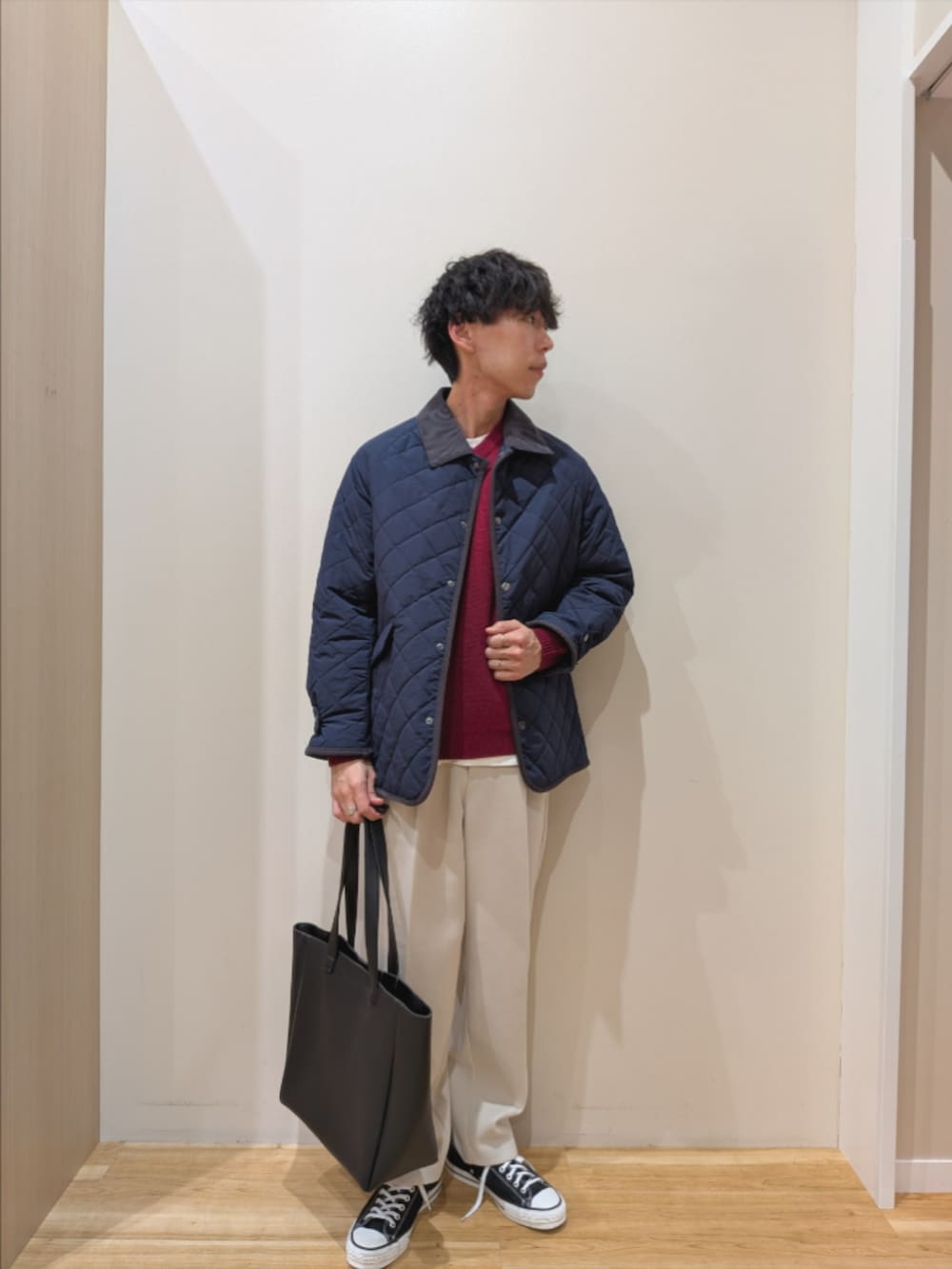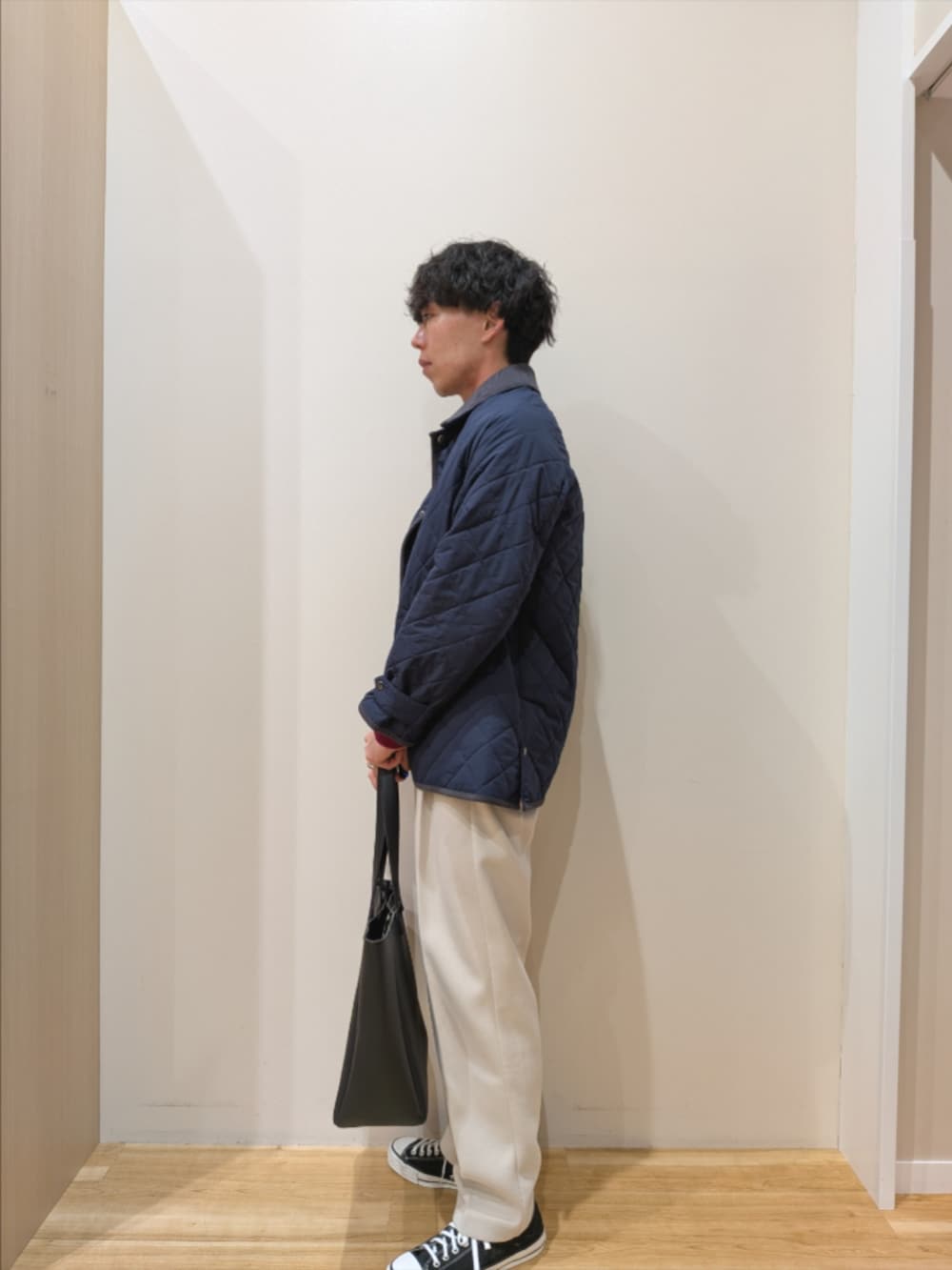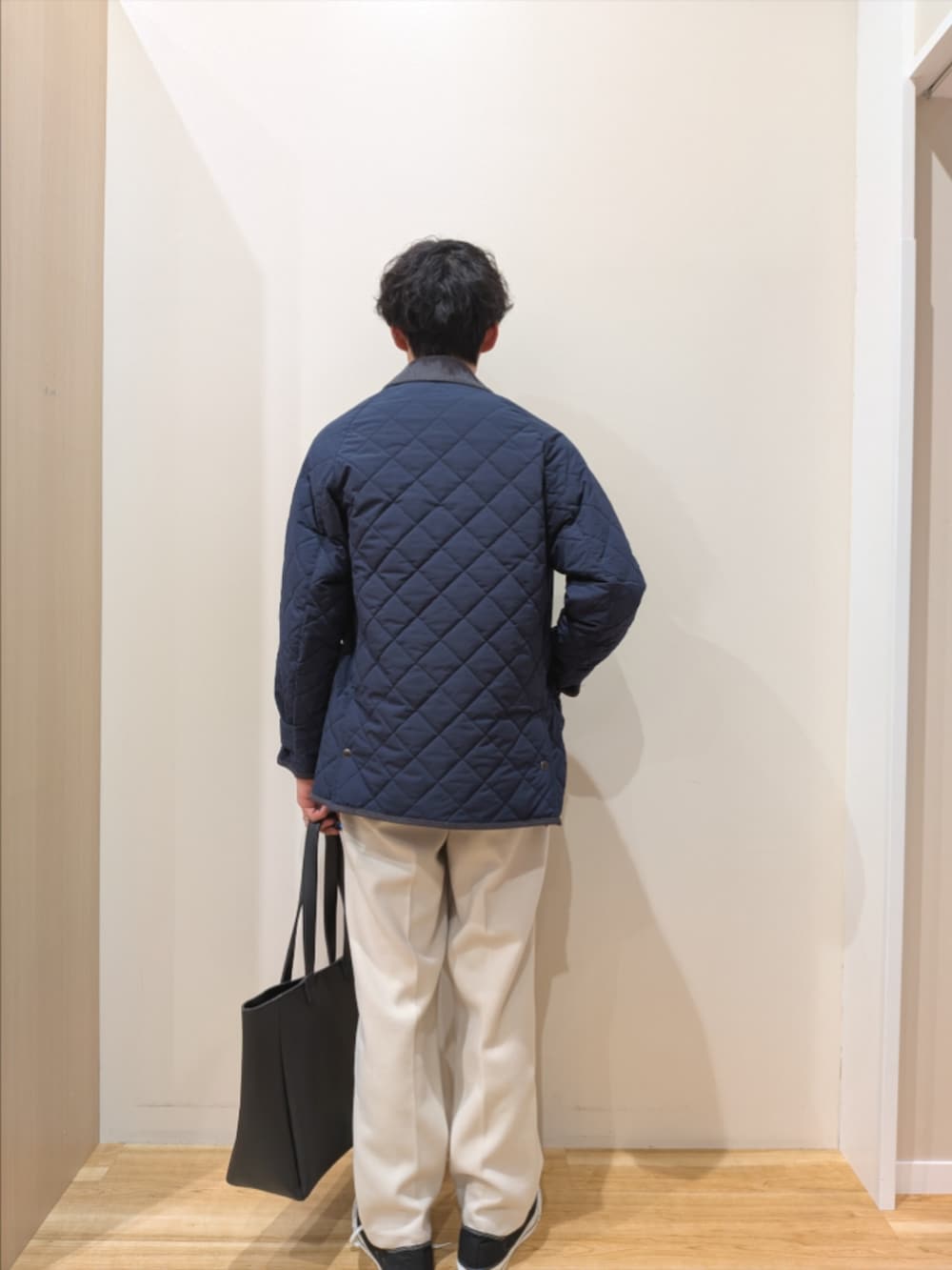 やや細身のシルエットと長めの着丈ですっきりとした印象です。