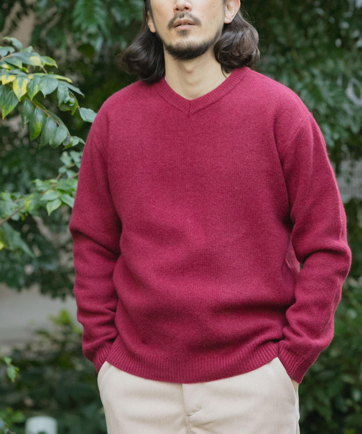 ITEMSタスマニア メリノウール100 Vネックニット- カラー: