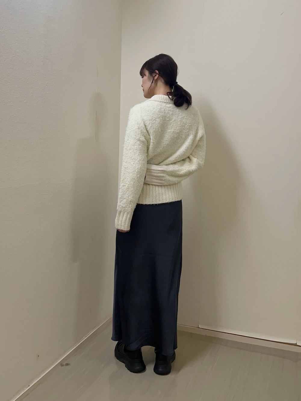 白ニットにサテンスカートでキレイめカジュアルに合わせてみました!