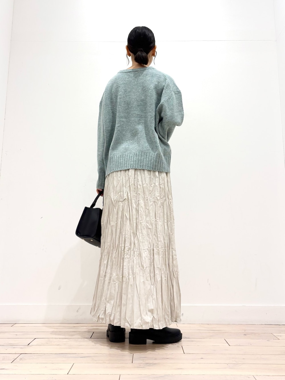合わせたスカートはかぐれの新作で凹凸のある綿生地でしゃかしゃかとした素材感になっております^ ^