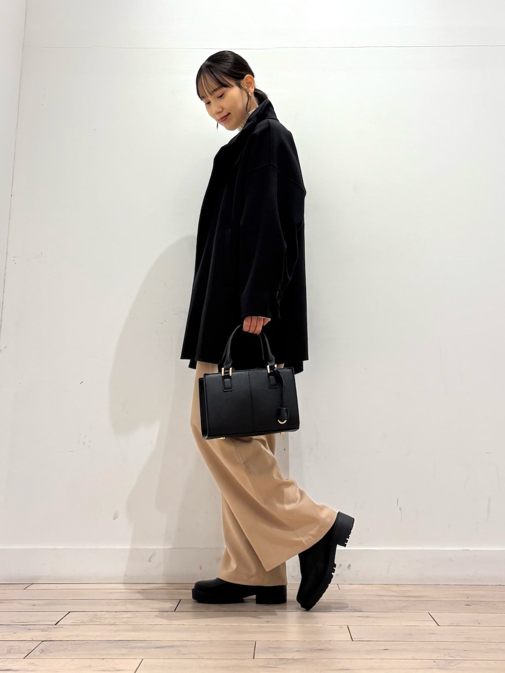 ゆとりがあるので厚手のニットと合わせても、もたつきません^ ^