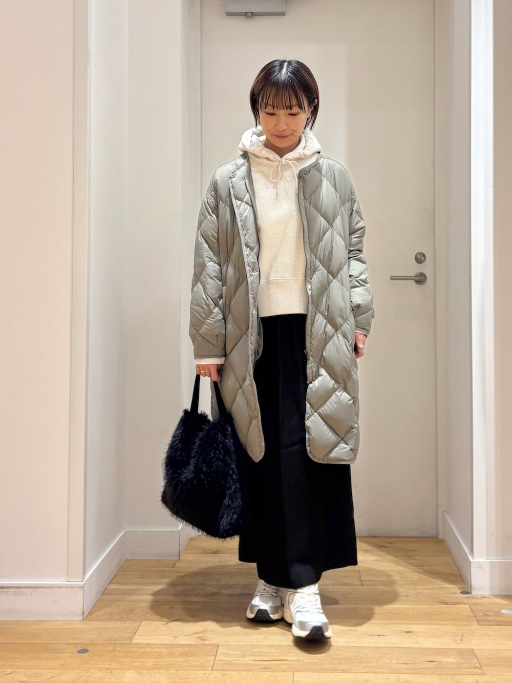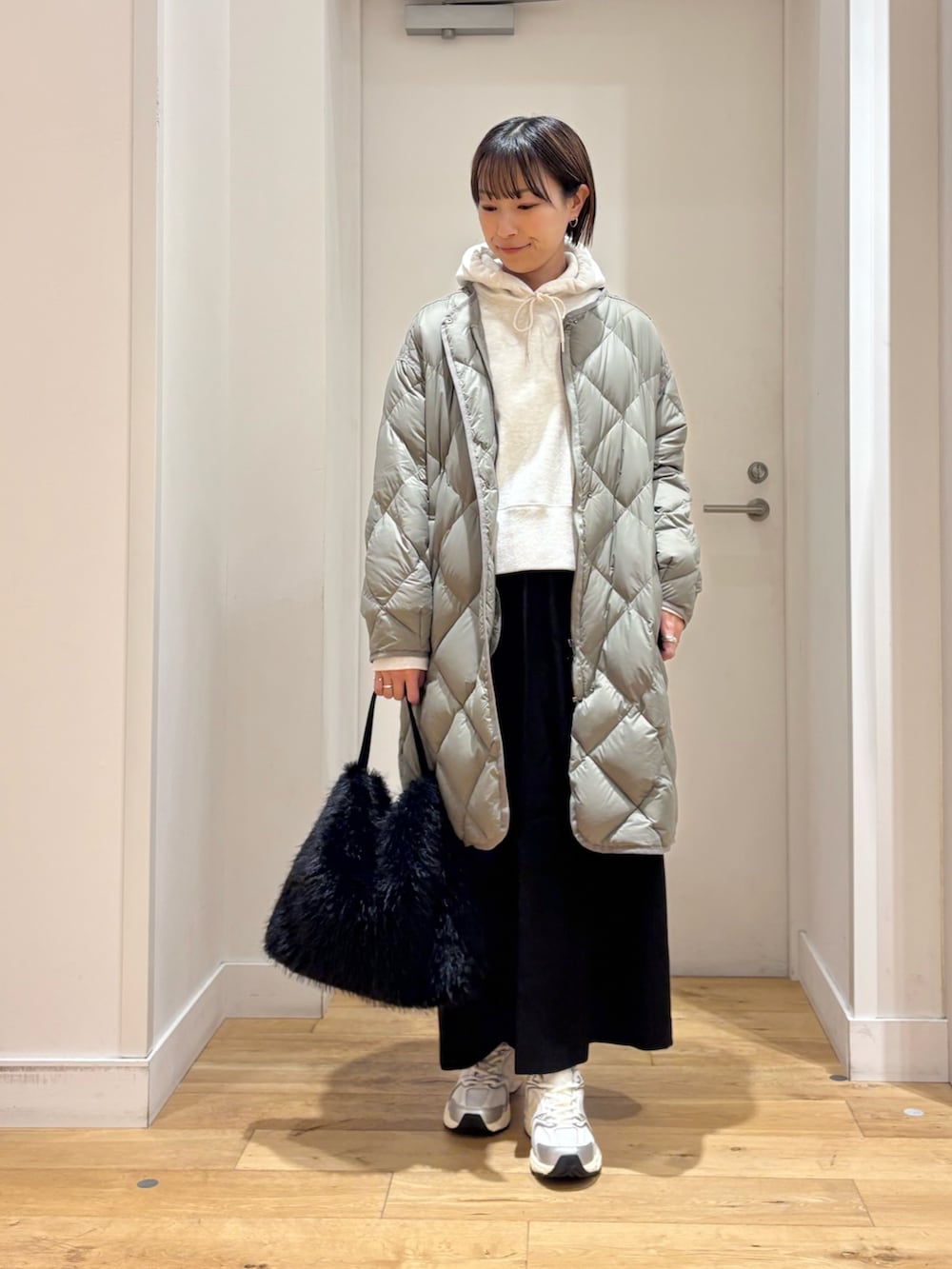 ボリュームの出やすいロング丈ですが、薄手のダウンなのでスッキリ着用していただけます!