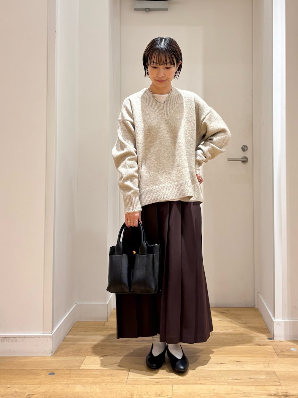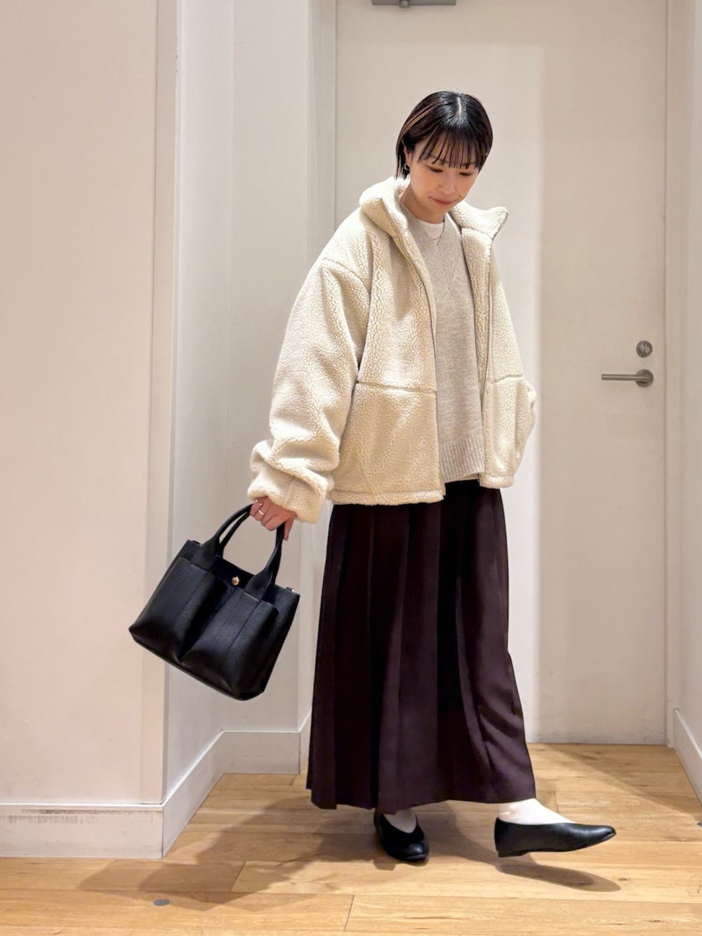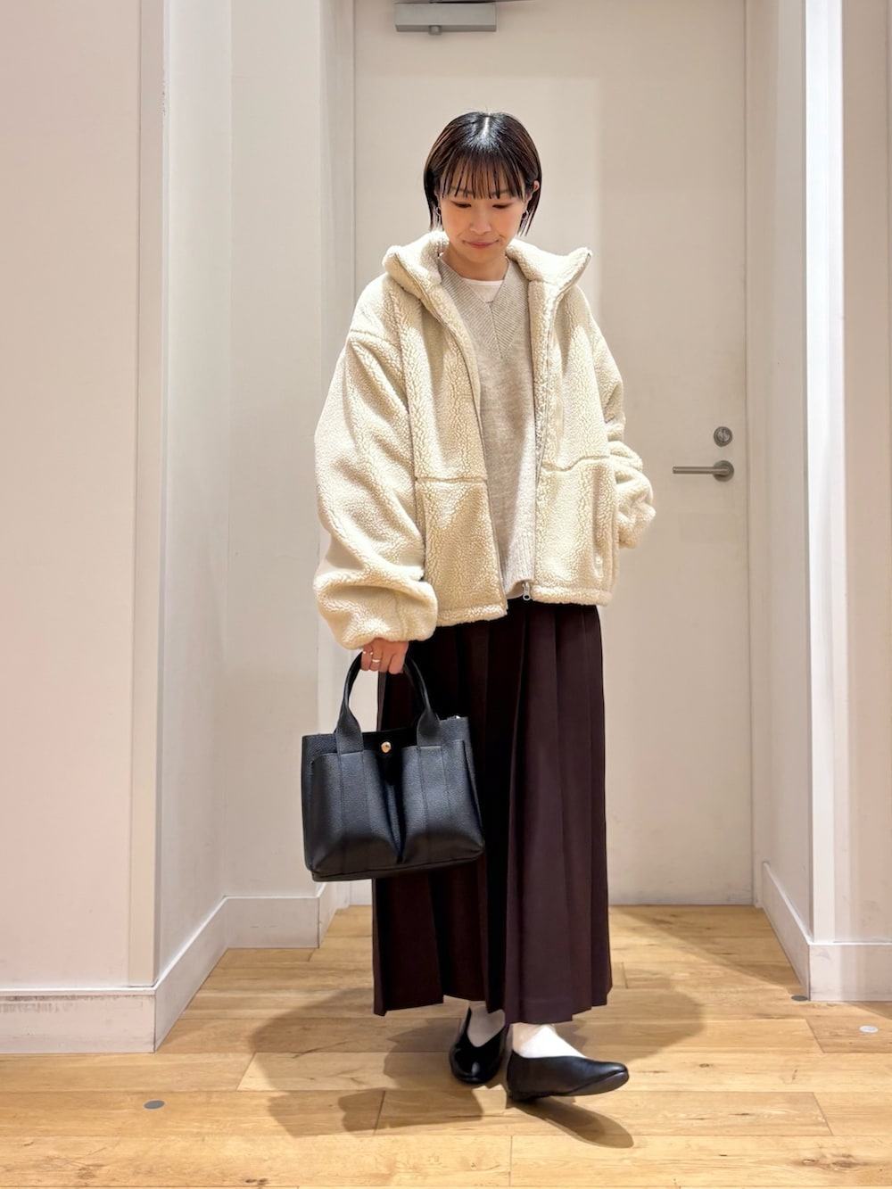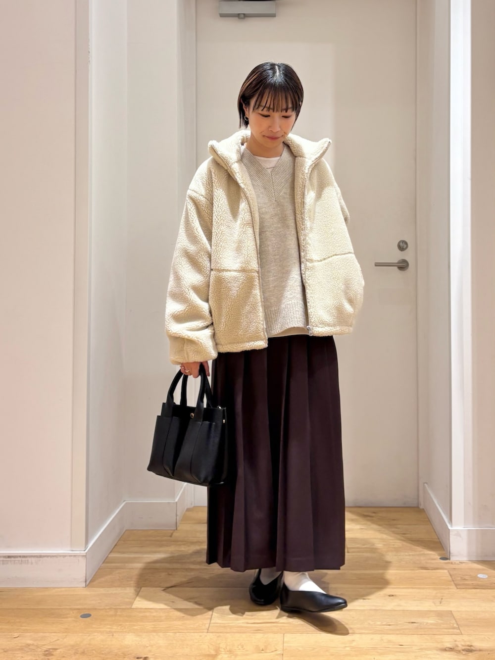 長すぎない丈感で、ワンピースやロングスカート合わせもバランス良く合わせていただけます◎