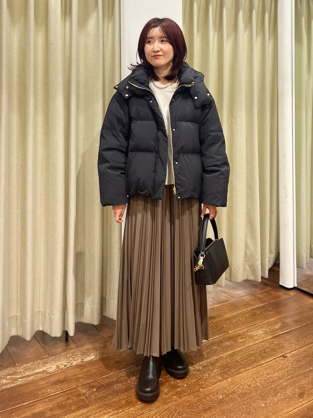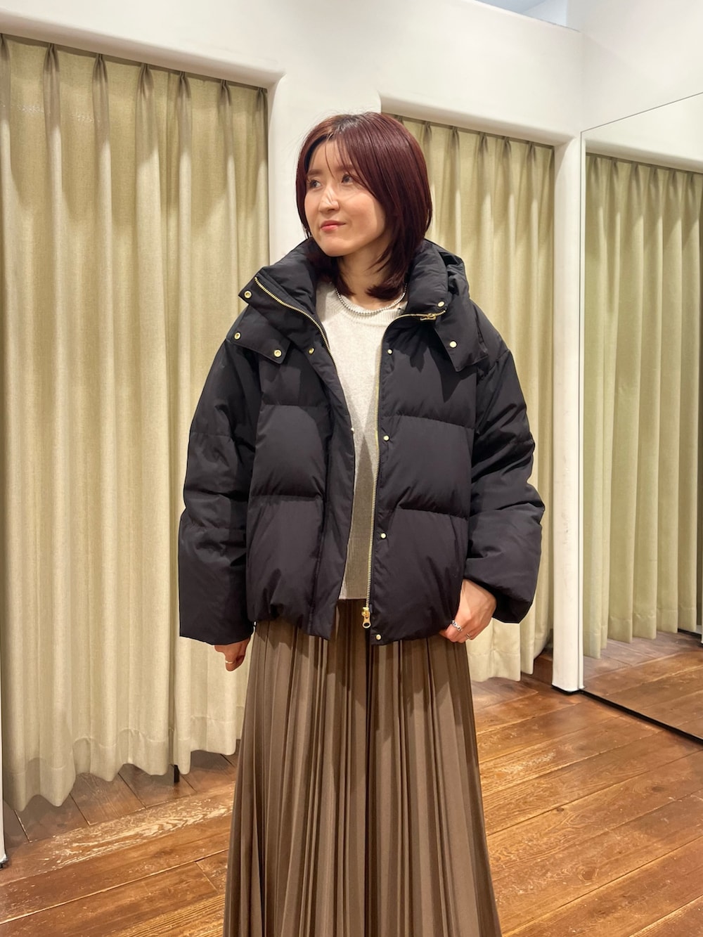 ニットはFOX混で柔らかく、さりげないラメがポイントです。着丈はすっきりしています。