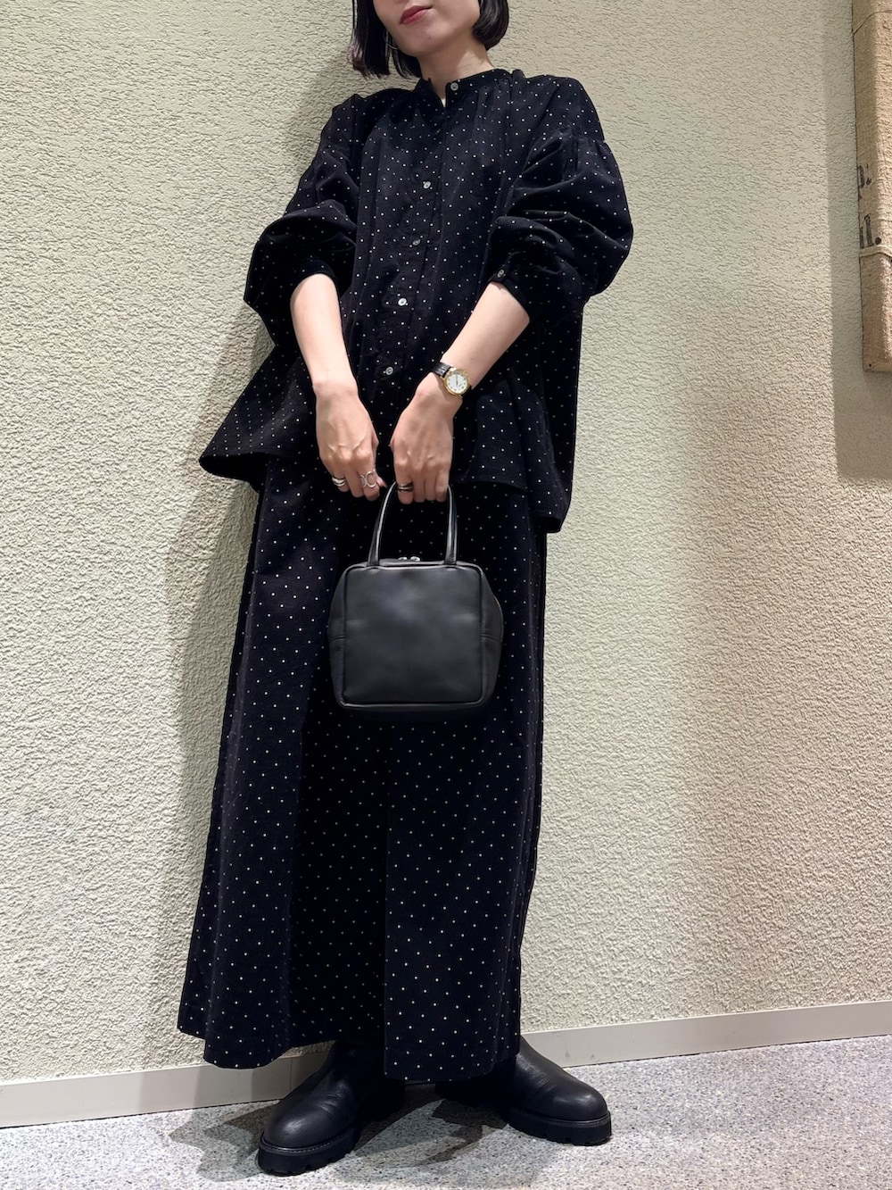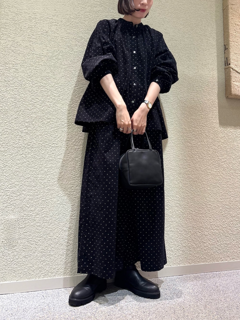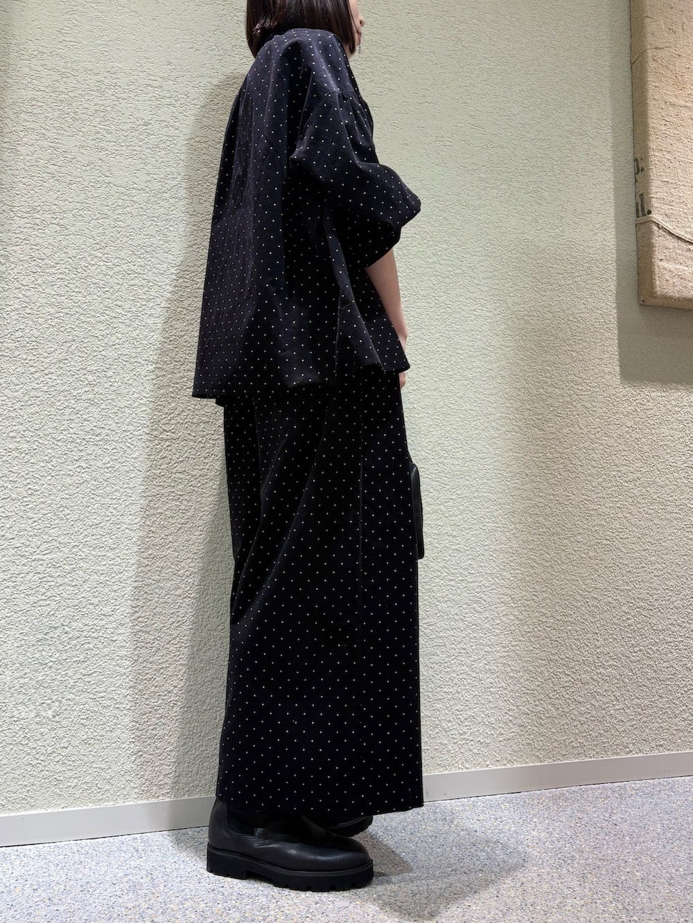 派手すぎず落ち着いた印象で着用頂けるドット柄のブラウスです。