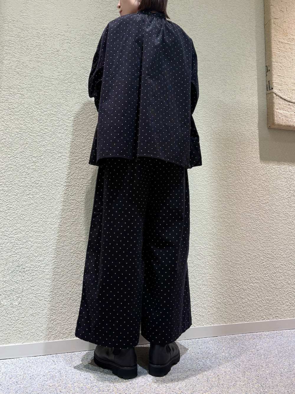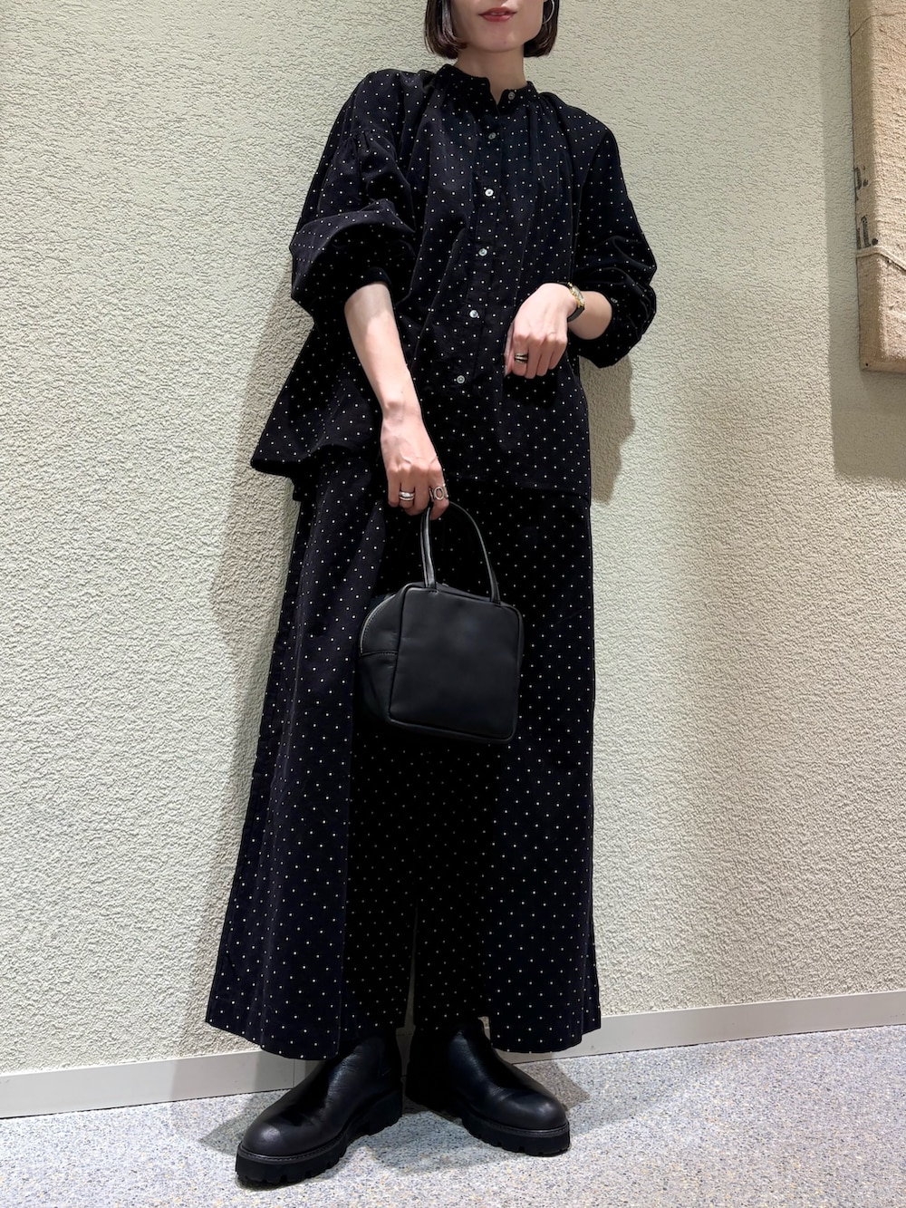 小ぶりのドットが派手すぎず大人っぽく着用頂けるデザインです。