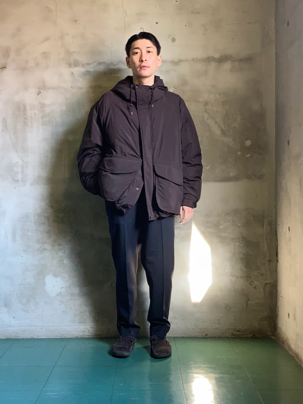 F&Sの中綿ブルゾンは大きめのパッチポケットと、フードが特徴的。