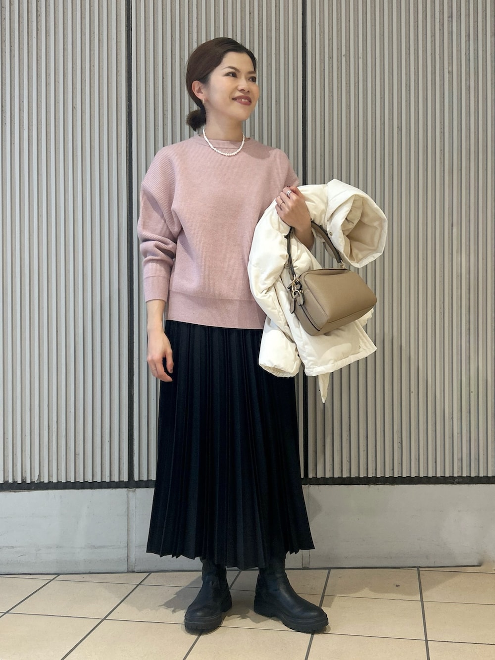 落ち着いた色合いのピンクのニット、探そうと思うとなかなかないですが、DOORSでしたらご用意しております🌸春先まで使えるので、セールでお得にゲットしてください🉐ニット以外はモノトーンで合わせたところがコーディネートのポイントです🙆♀️
