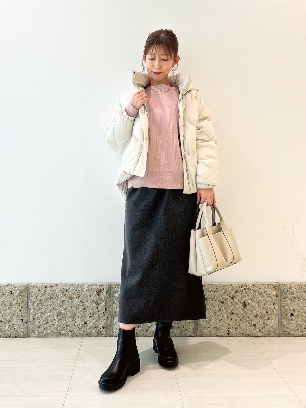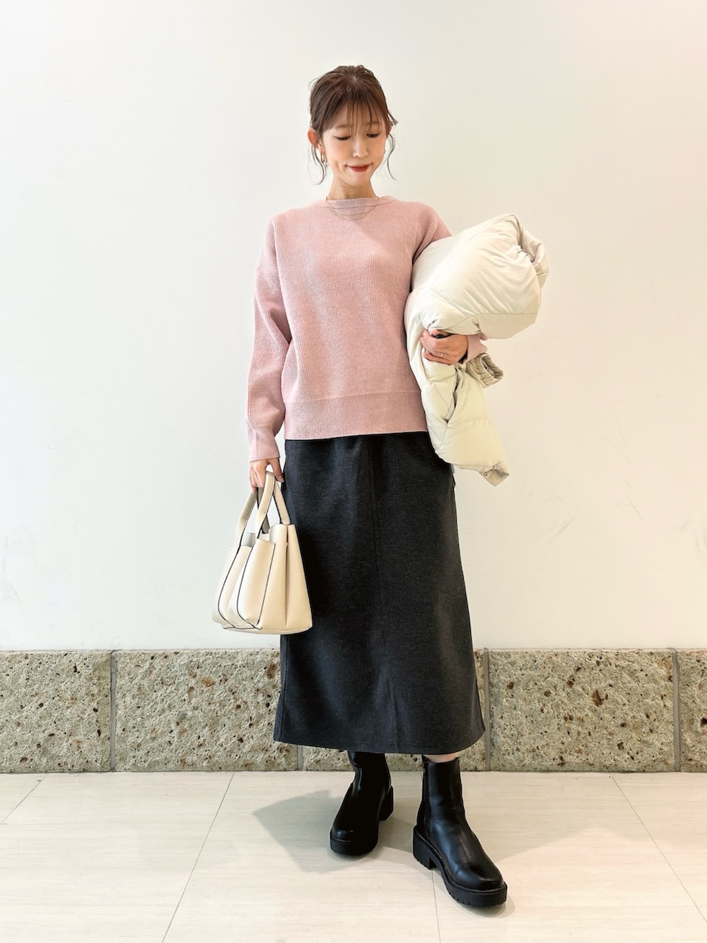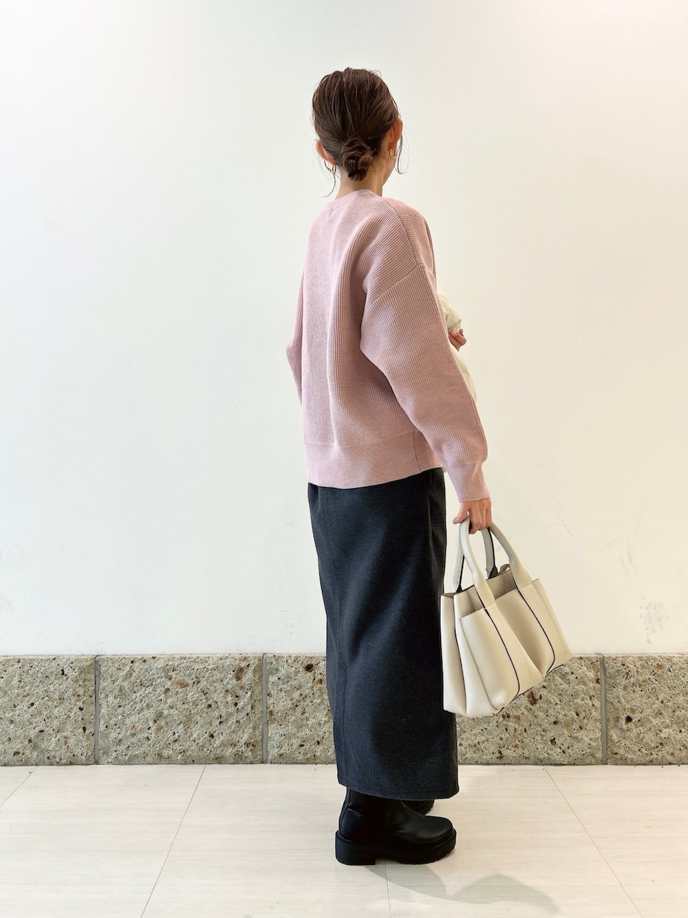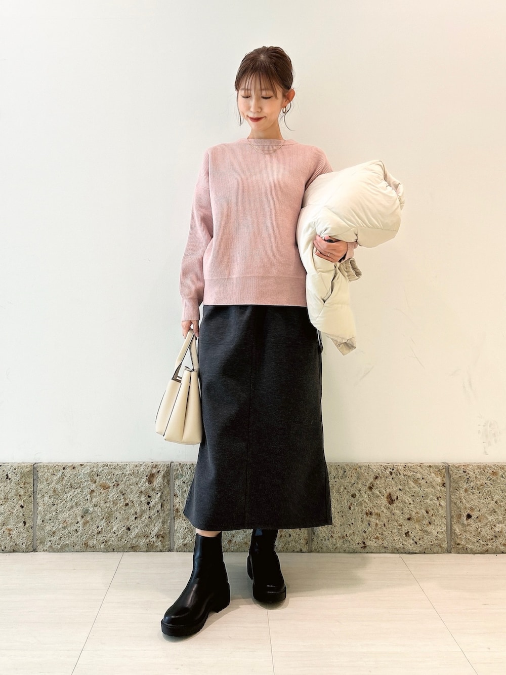 淡いピンクカラーで、コーディネートを柔らかな雰囲気に