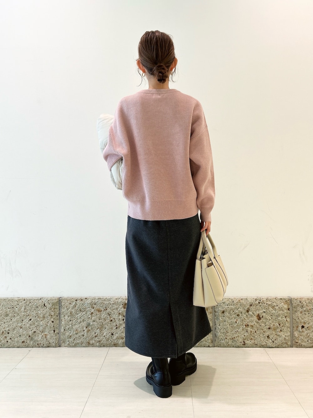 トップスはふわふわの毛の風合いが可愛いらしいニット。