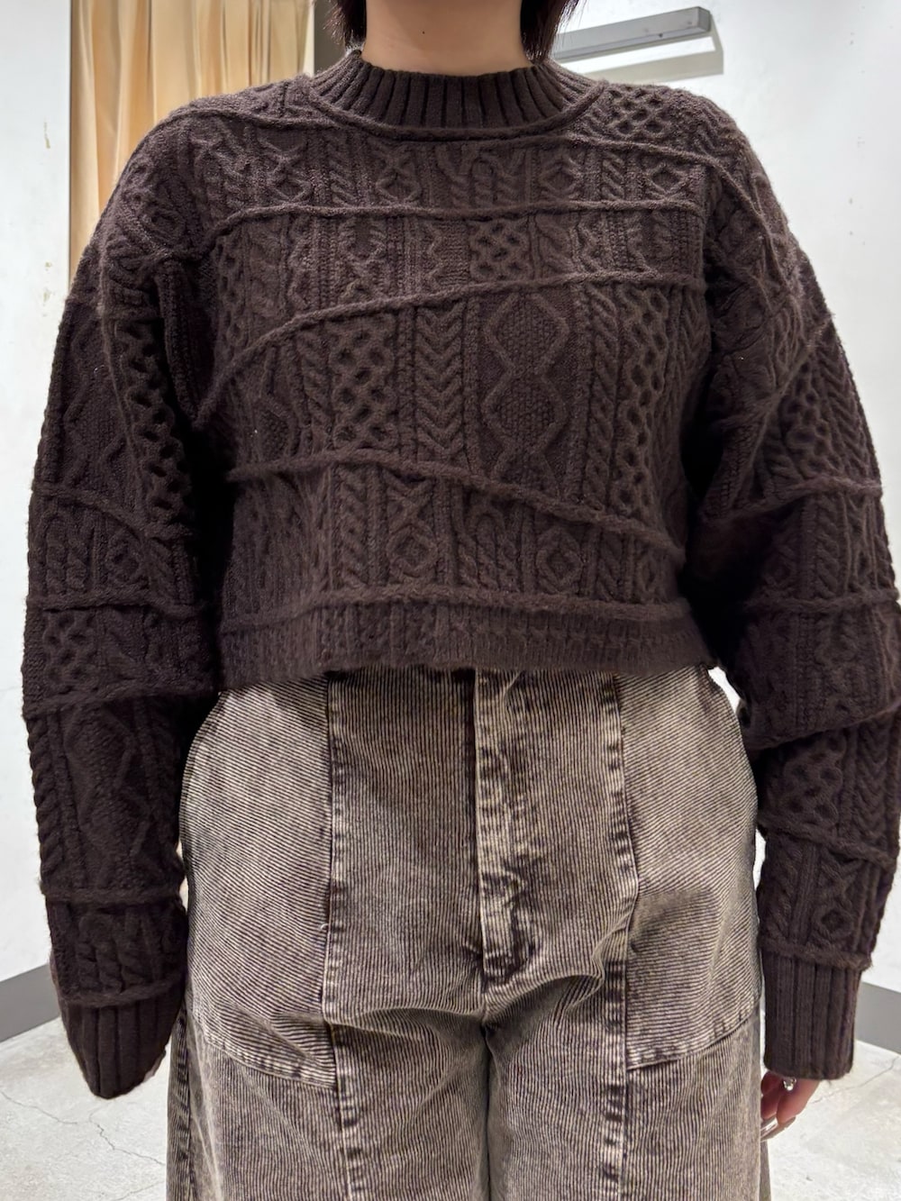 パッチワーク風のケーブル編みとフォルム感のあるシルエットが可愛らしさとカジュアルさを演出してくれます🫰🏻