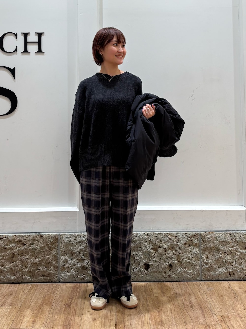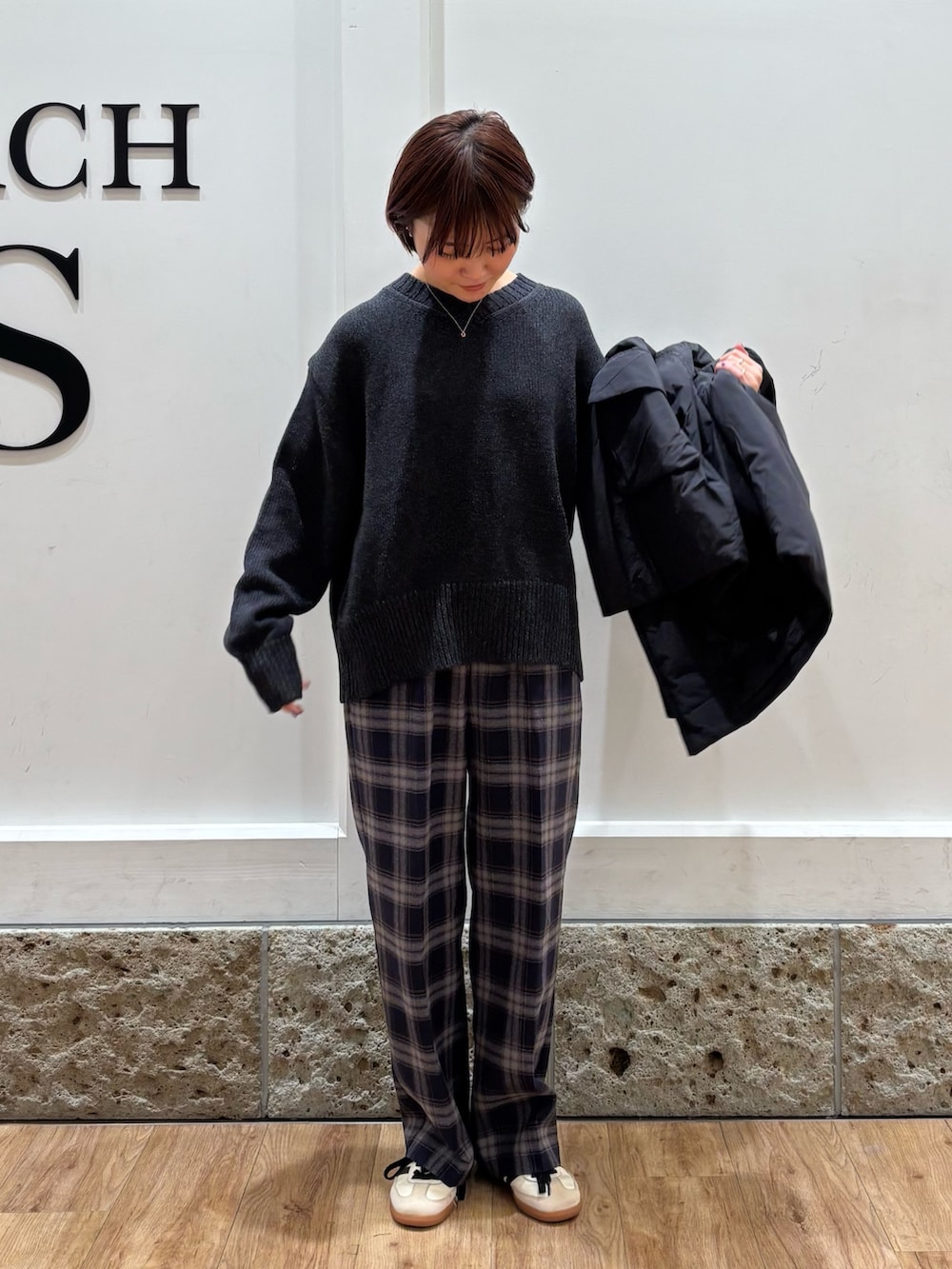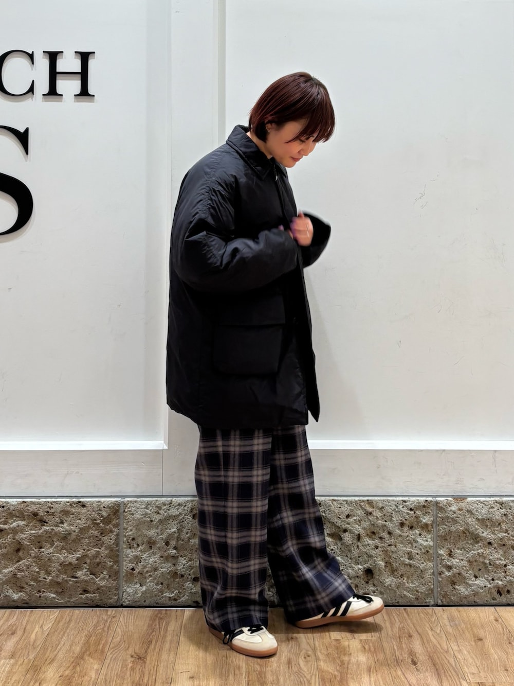 フォークアンドスプーンの軽量アウターを着用しています。中綿なのでダウンよりも軽さがあり、さらっと着ることができます。ほどよい大きさなので運転や室内移動が多い方にかなりおすすめですよ◎