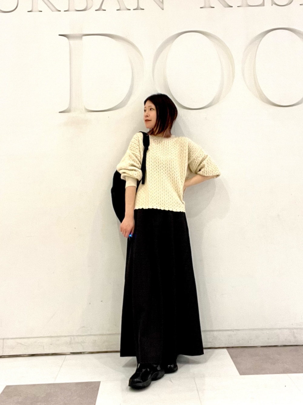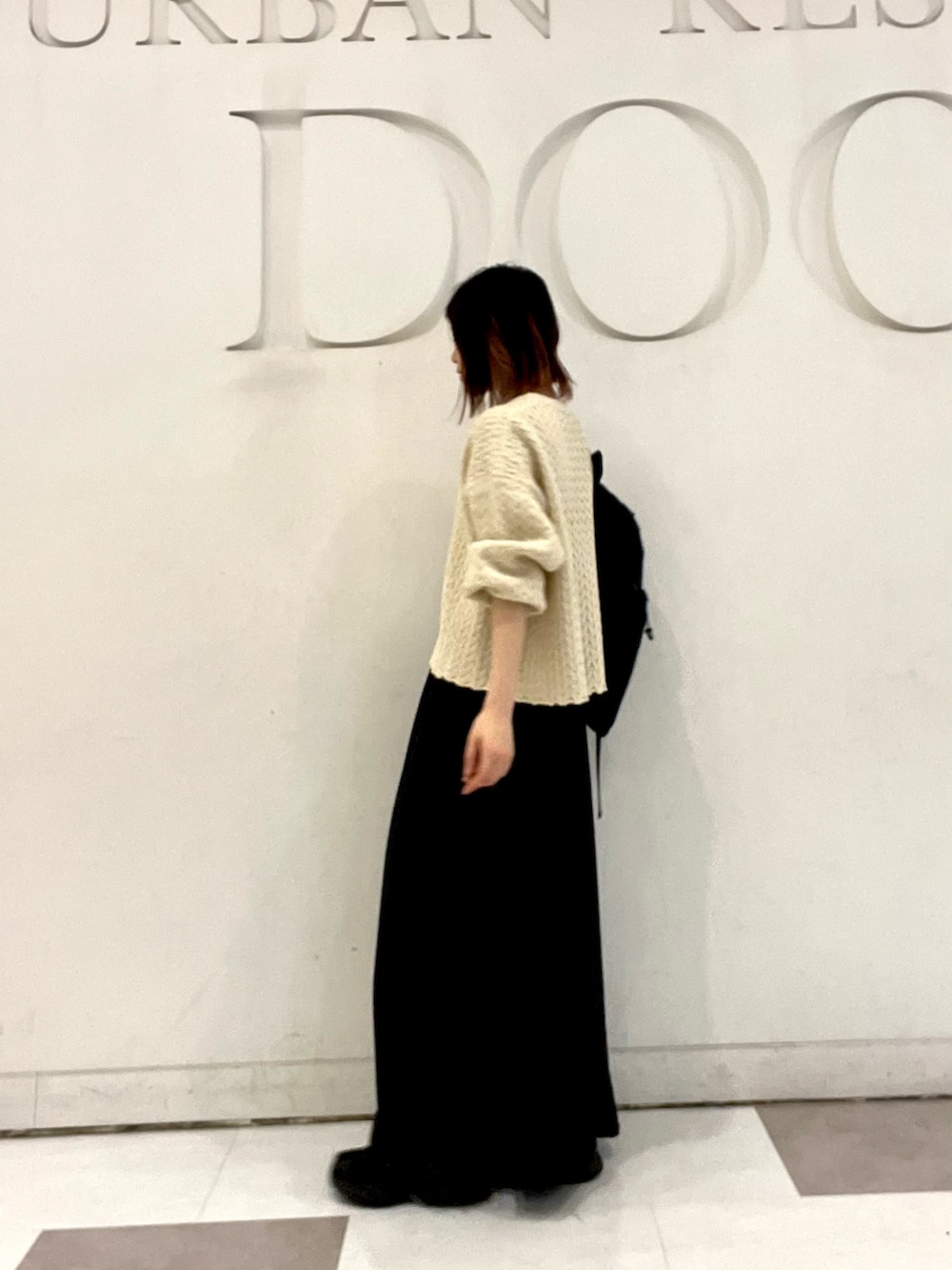 ニットはヘリンボーン柄が可愛くゆったりとしたシルエットなので着やすいです◎コンパクトな着丈で見た目よりすっきりと着れます🧶