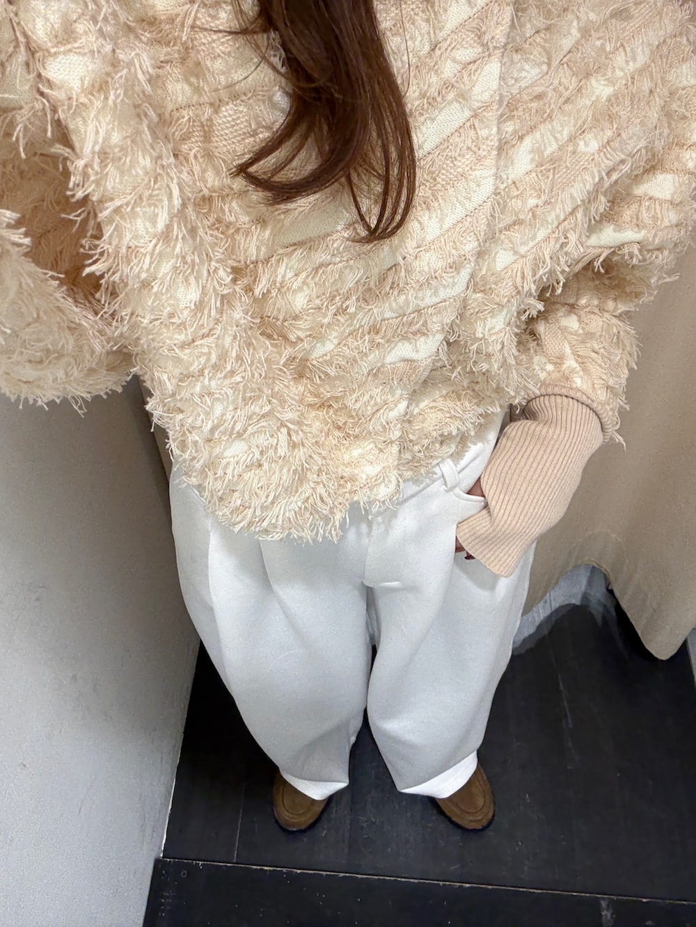 パキッとしたホワイトカラーのパンツを合わせると少し大人な印象になれます!