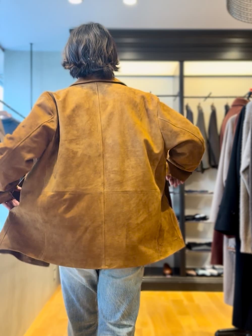 ジャケットのような仕上がりで丈はミドルなので、お尻が隠れるほどとなっており、