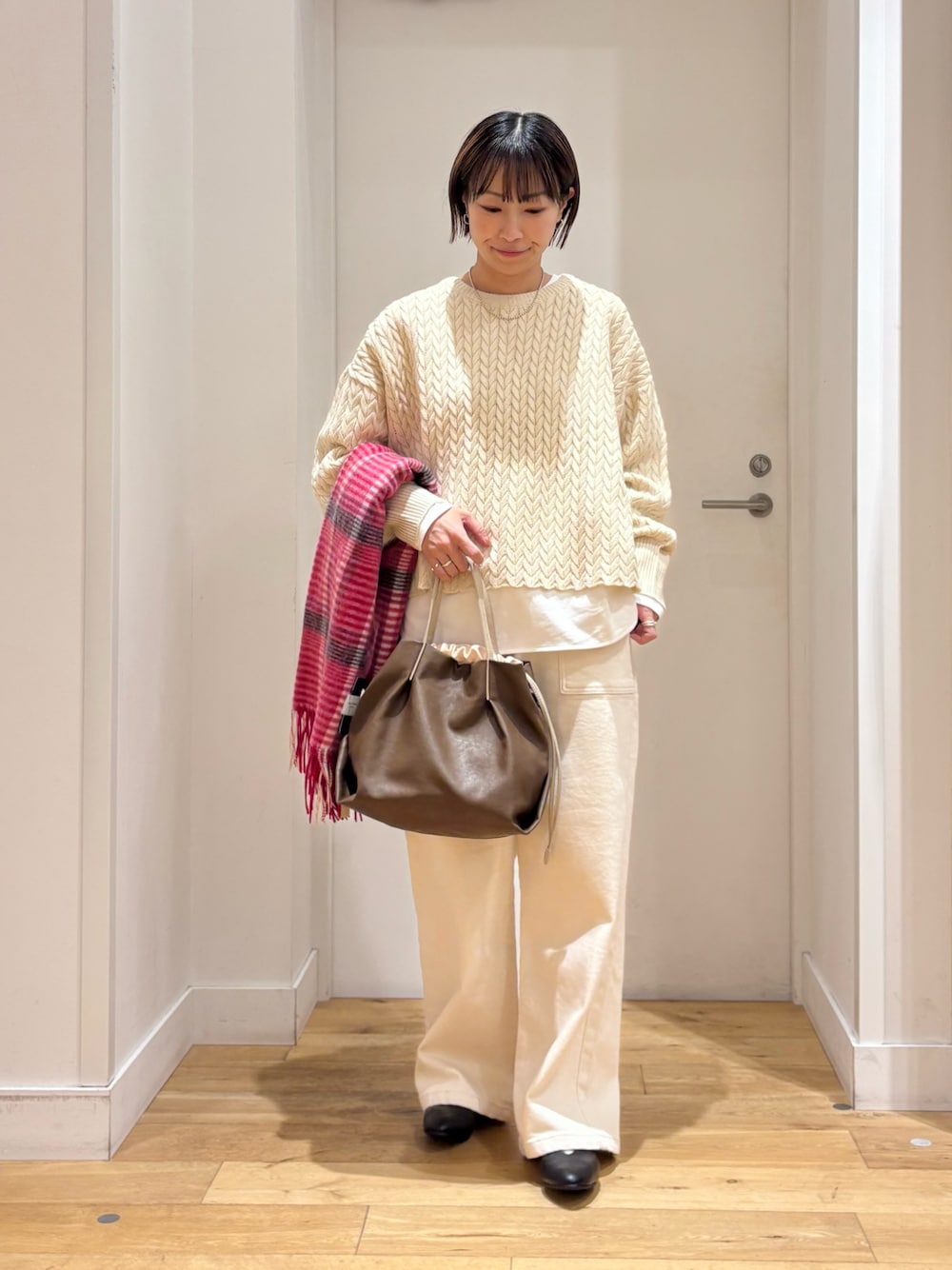 シンプルなデザインで合わせやすく、首元はスッキリしたデザインなのでフードアイテムやタートルネック合わせもオススメ♪