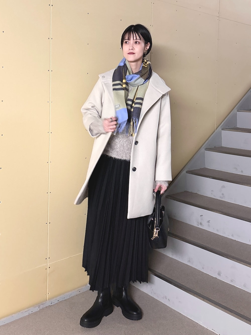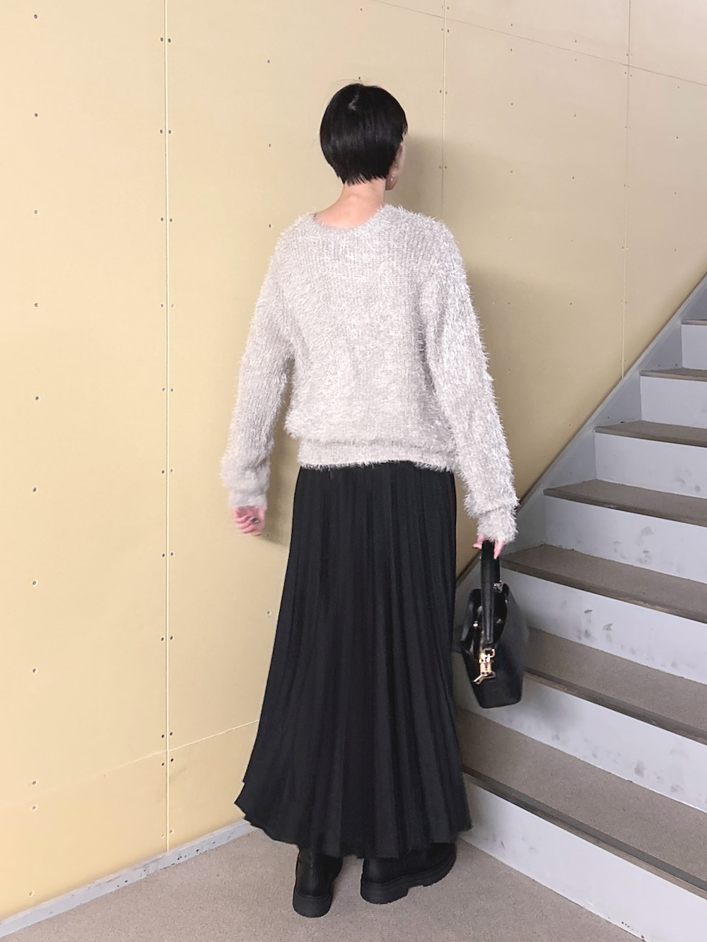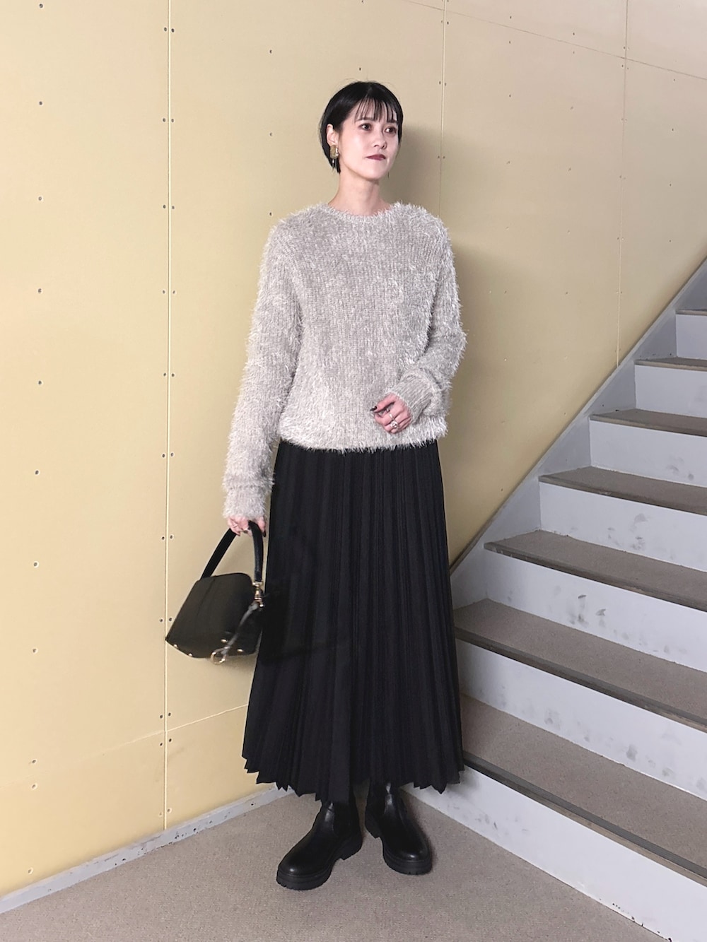 スカートとシャギーニットを合わせて上品なコーデにしました!
