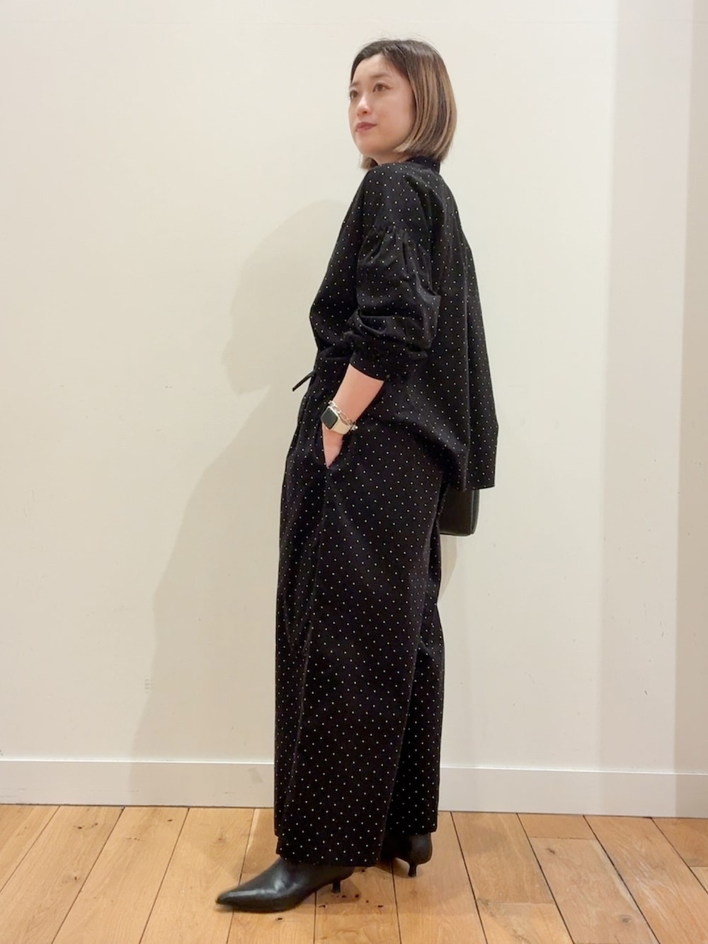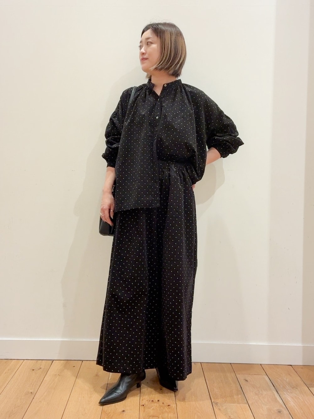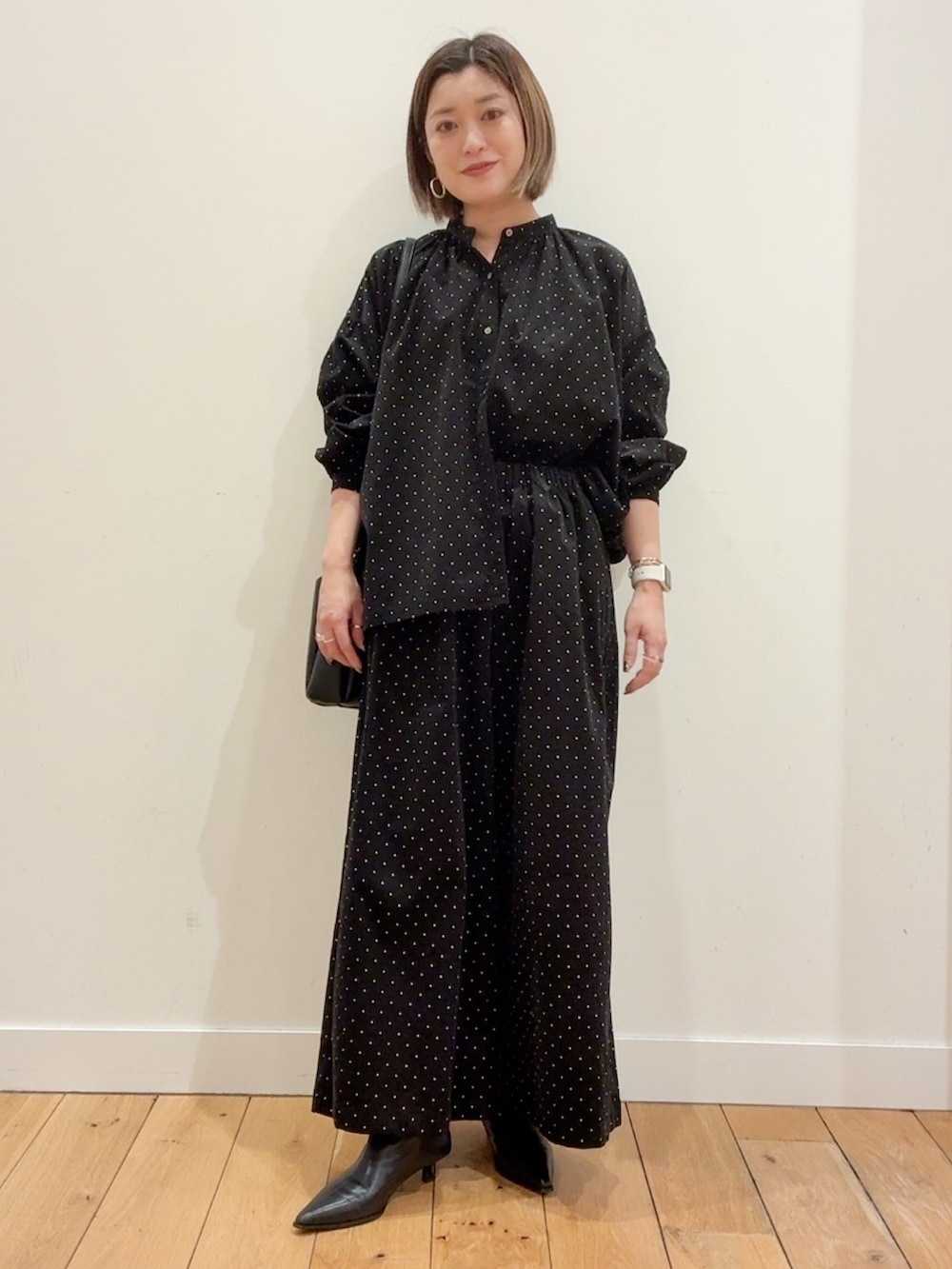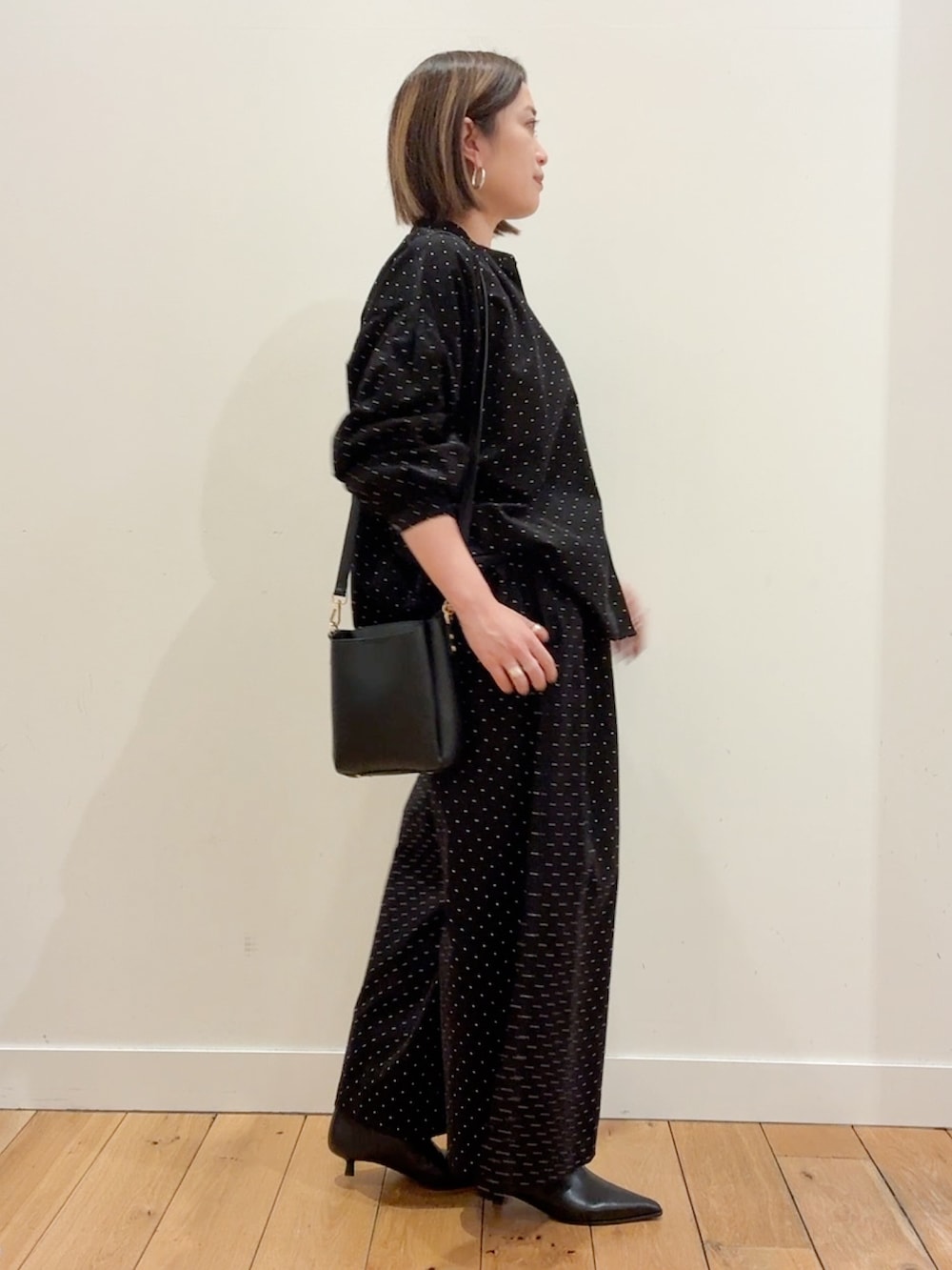 オールブラックでゆるさの中にもスッキリ感のあるコーディネート。
