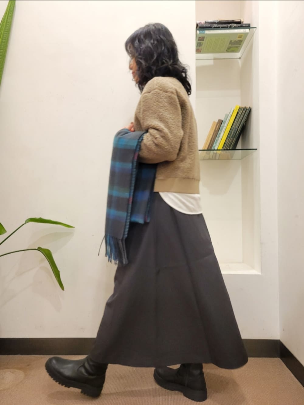 DOORSウールチェックストール- 着用カラー: