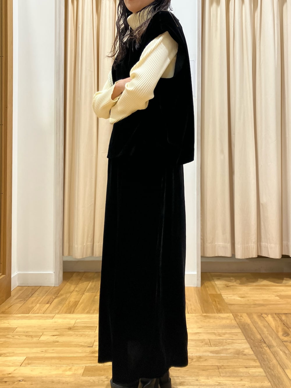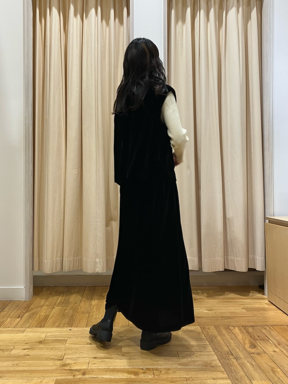 セットアップで着るとこなれ感の増すかぐれのベルベットシリーズ。光沢のある素材で、合わせるインナー次第でキレイめにも着ていただけます◎