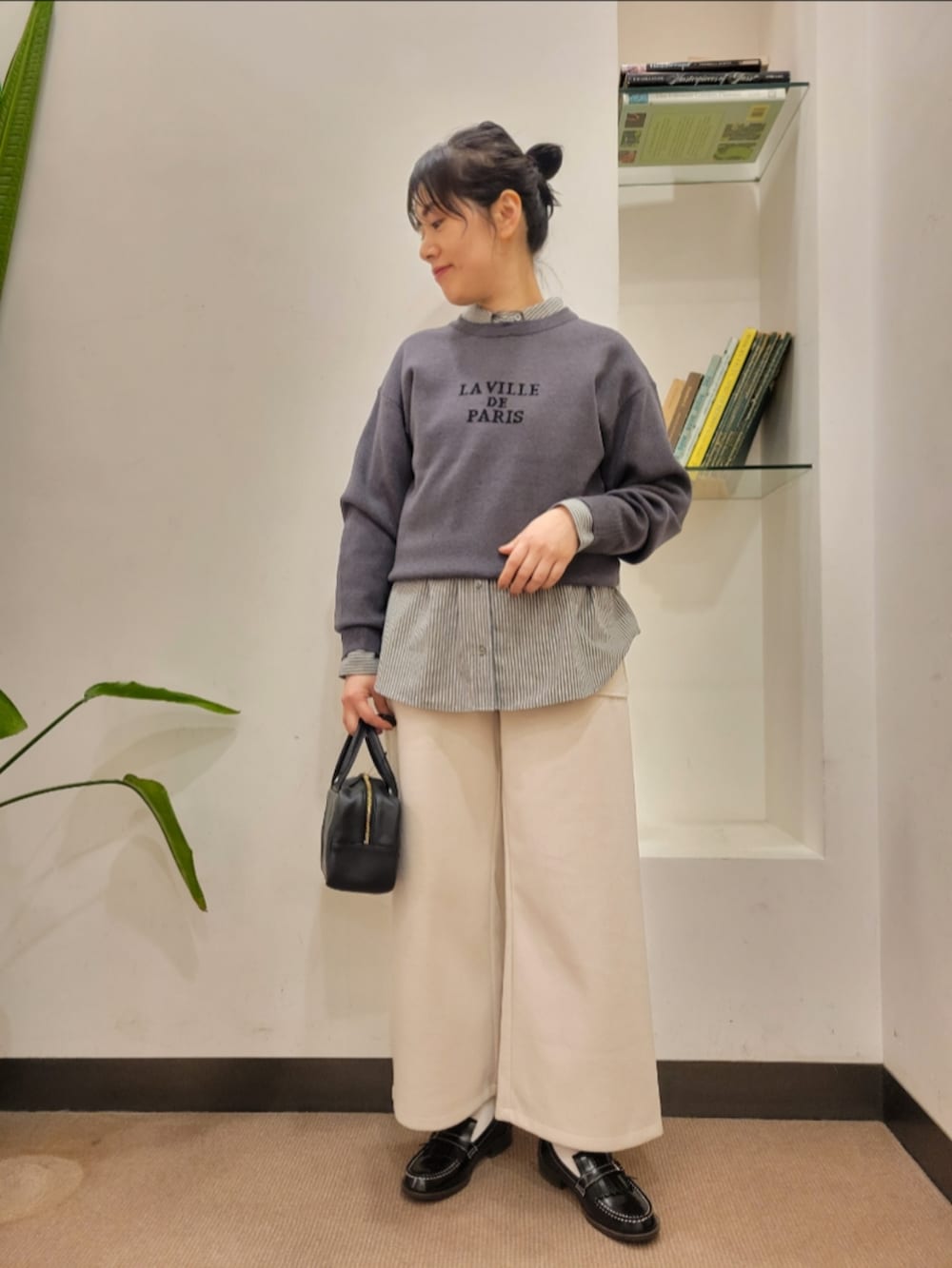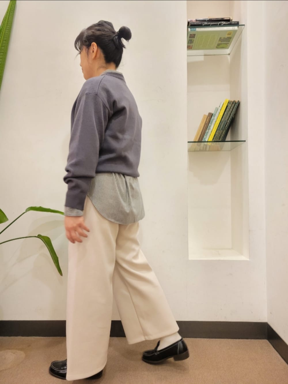 シャツはゆったりで着丈長めで