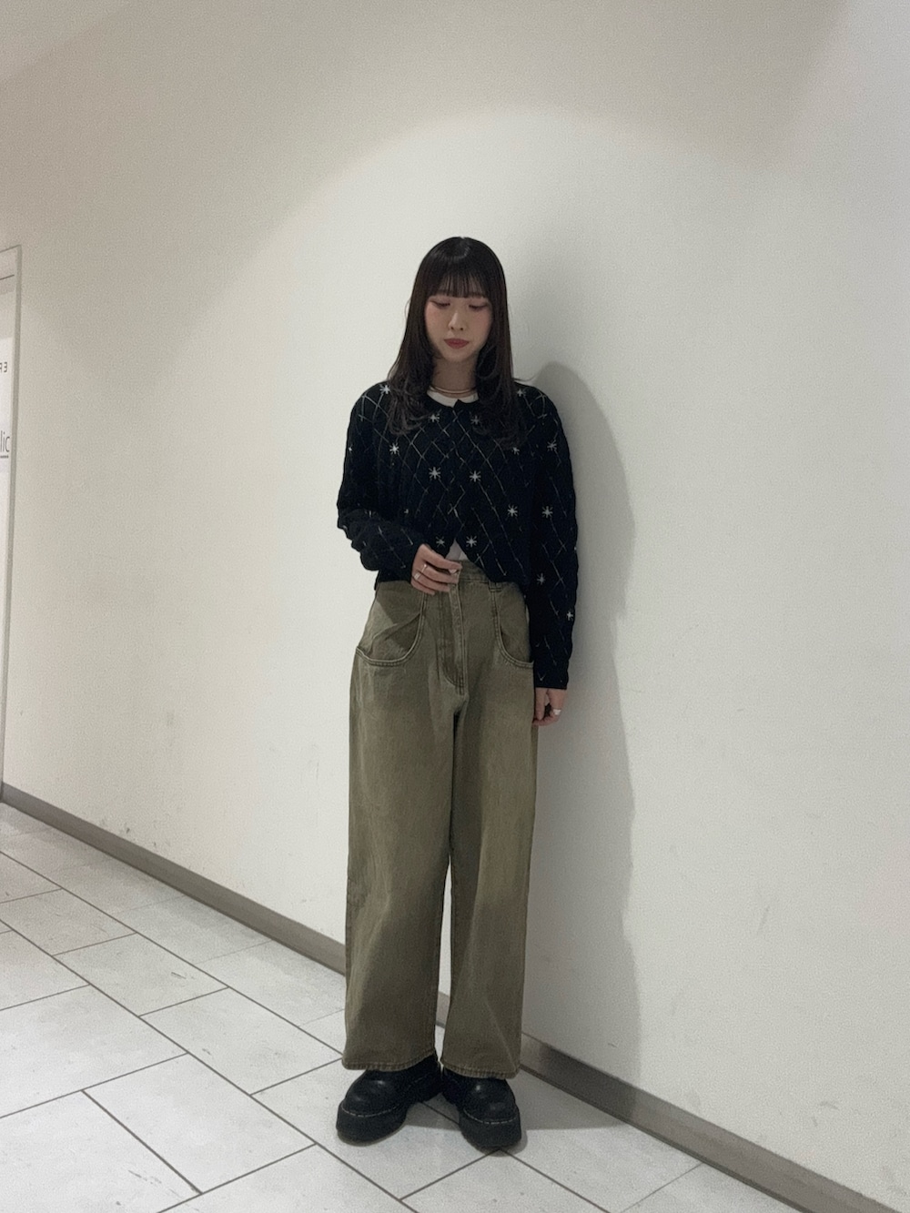 ミニ丈のトップスと大人気のビックポケットのデニムと合わせました!色味が落ち着いているため、大人っぽさもありつつカジュアルなコーデです🫶🏻