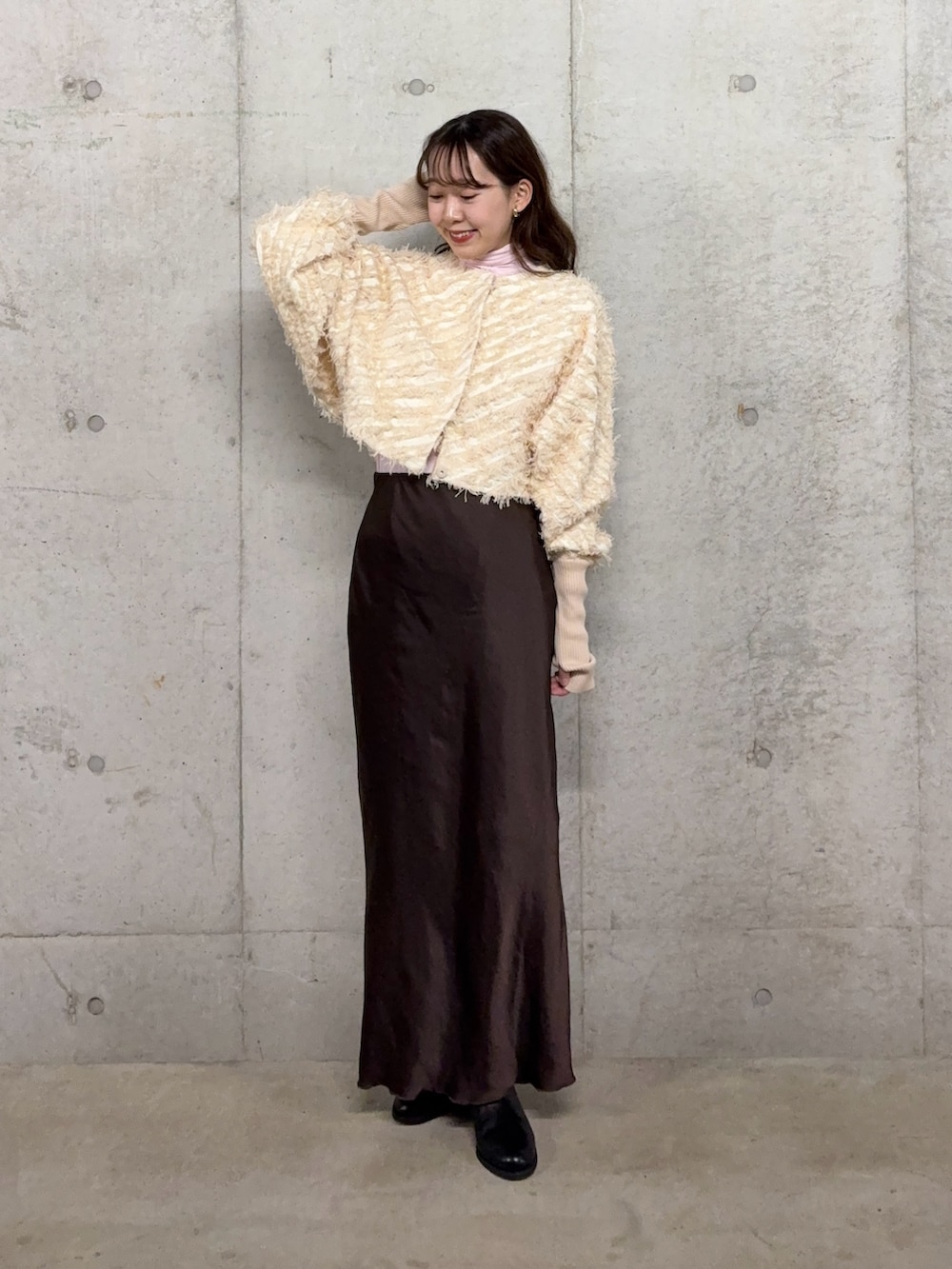 可愛らしいトップスには落ち着いたアイラインスカートで大人っぽさをプラス🥹