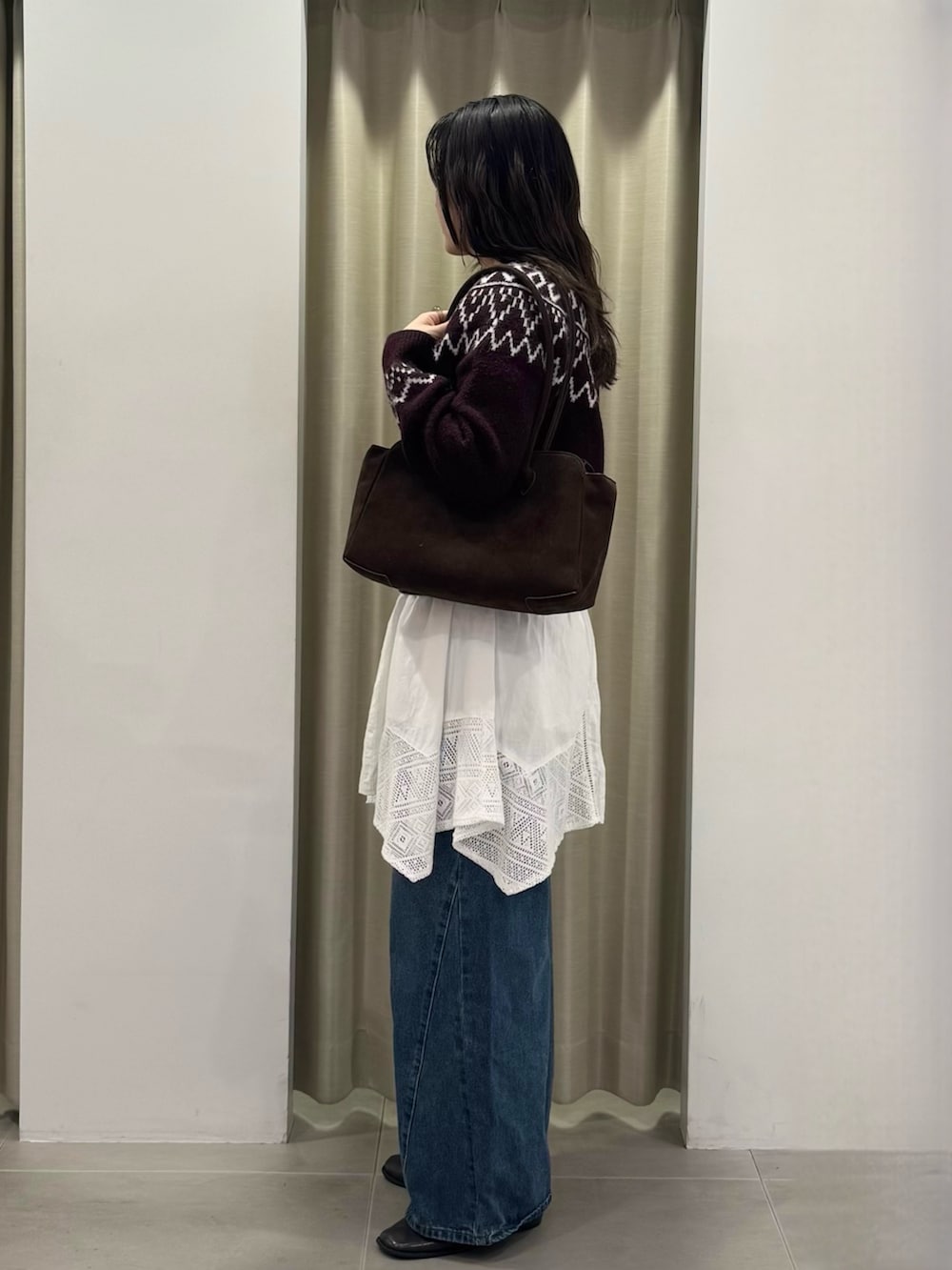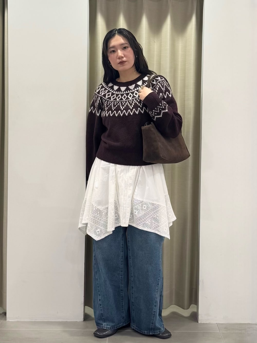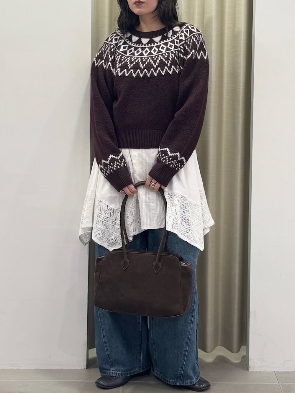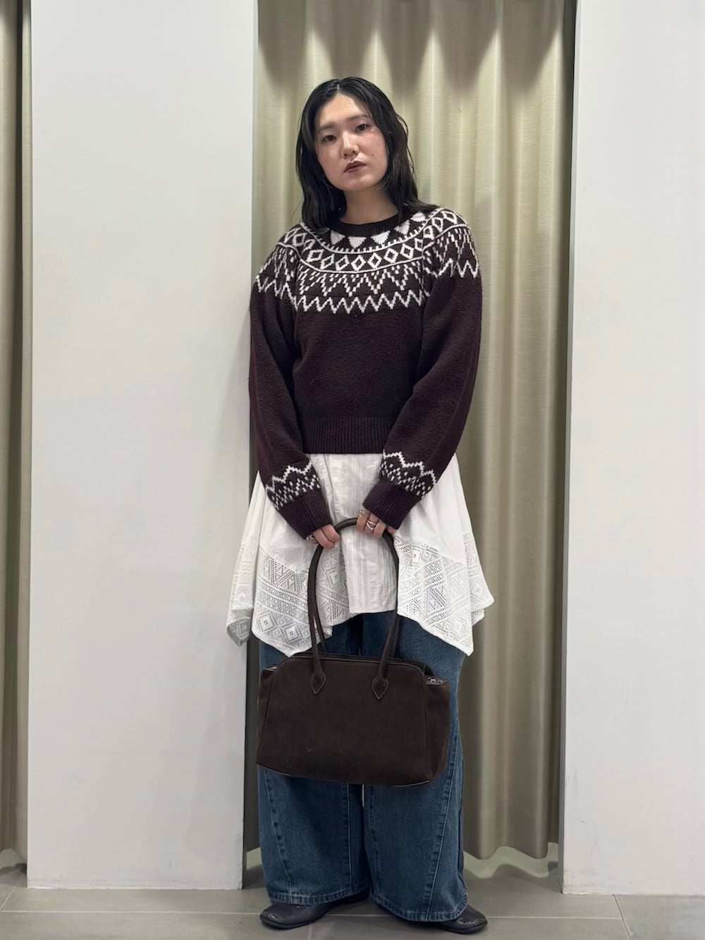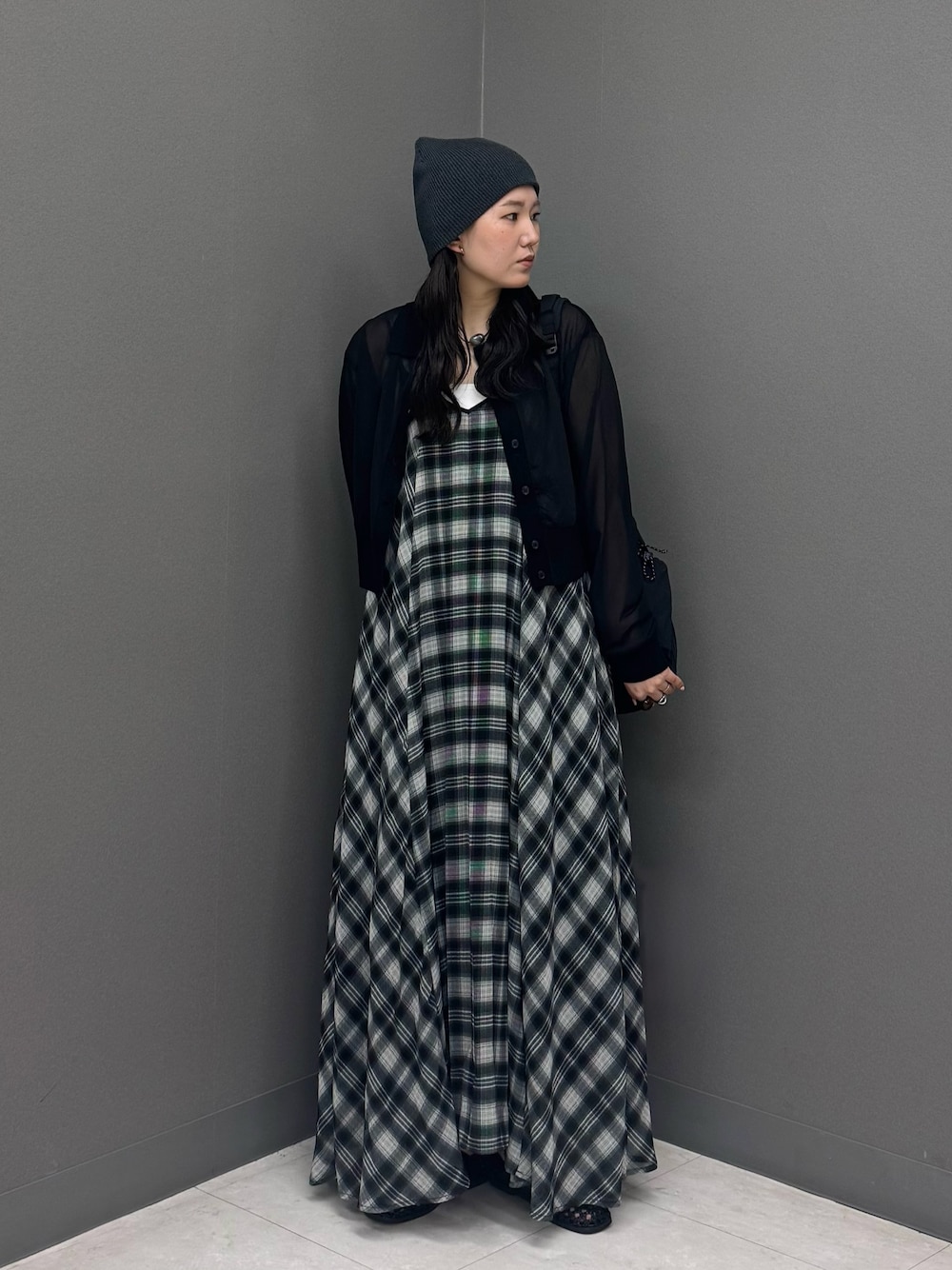 今回はミニワンピにワイドデニムを合わせてレイヤードスタイルに