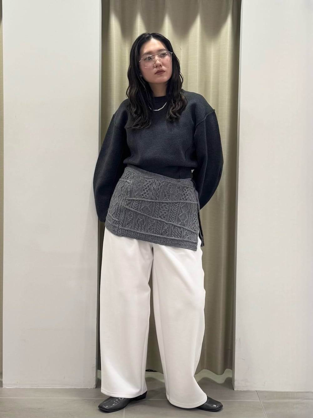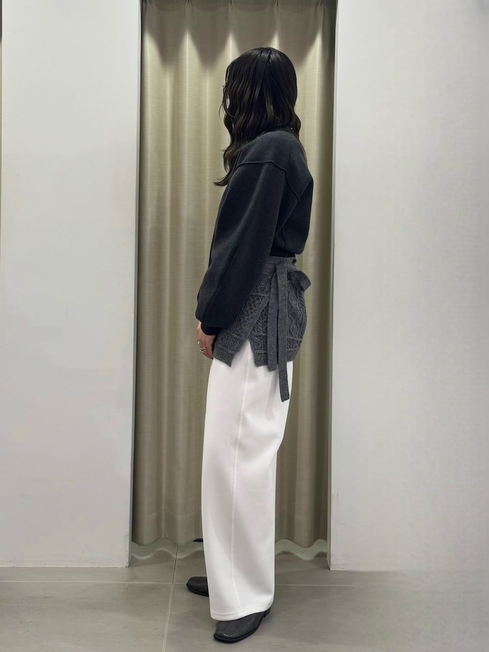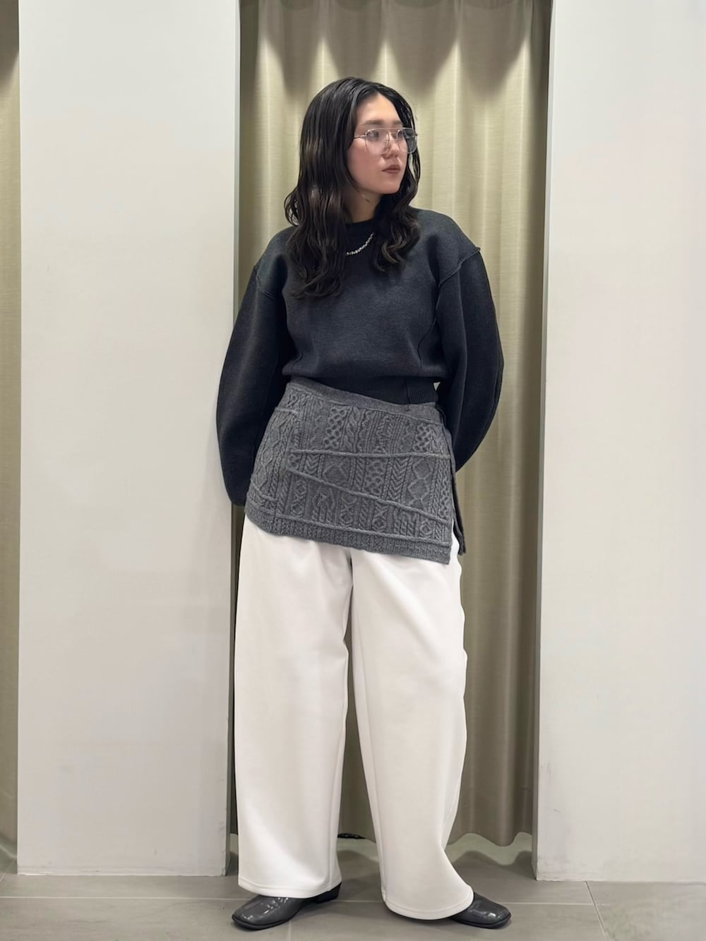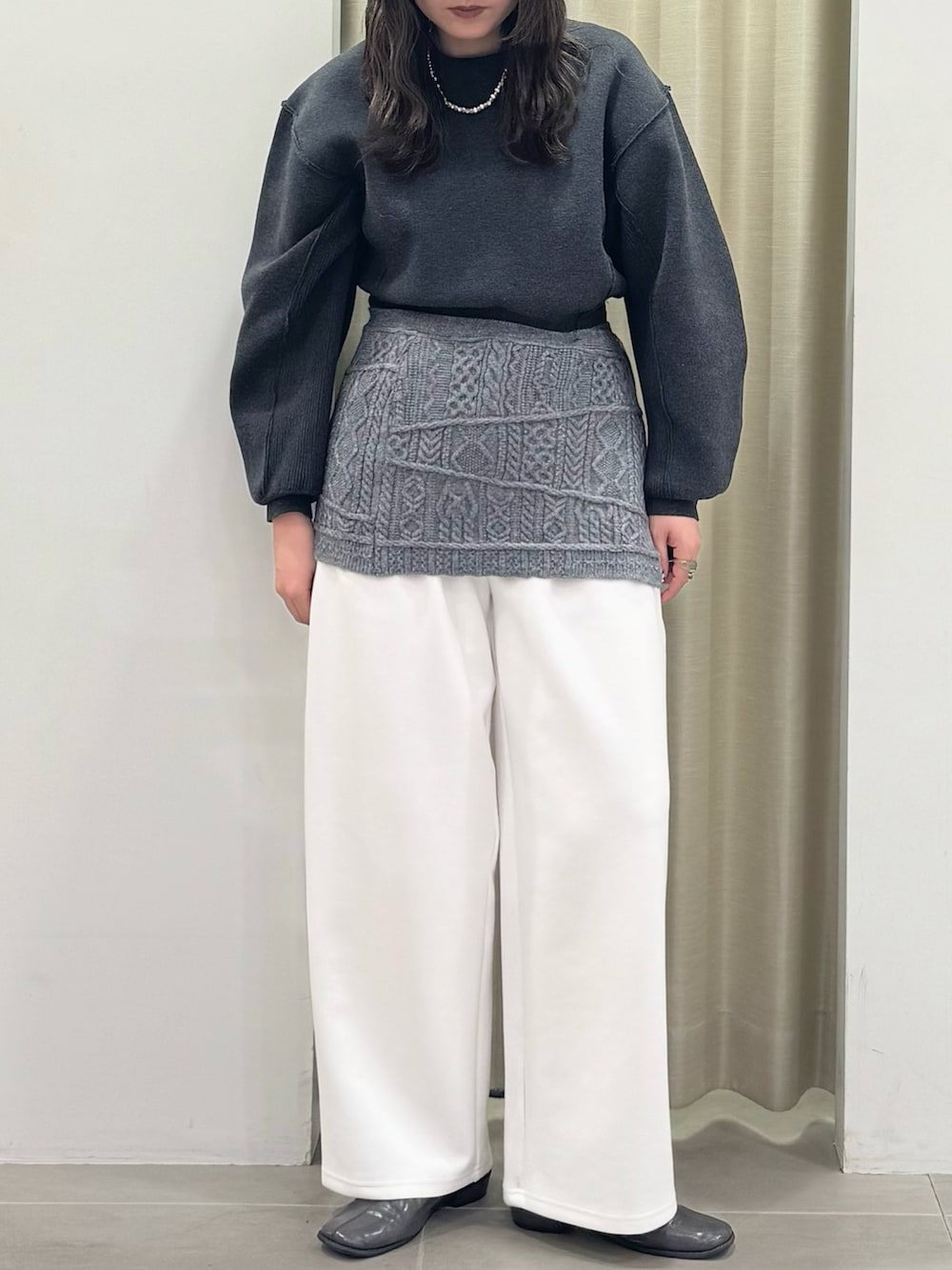 腰に巻いたラップスカートは同じ素材のMIXケーブルショートニット(KBA7-22R330)と合わせた着こなしもおすすめです🌟