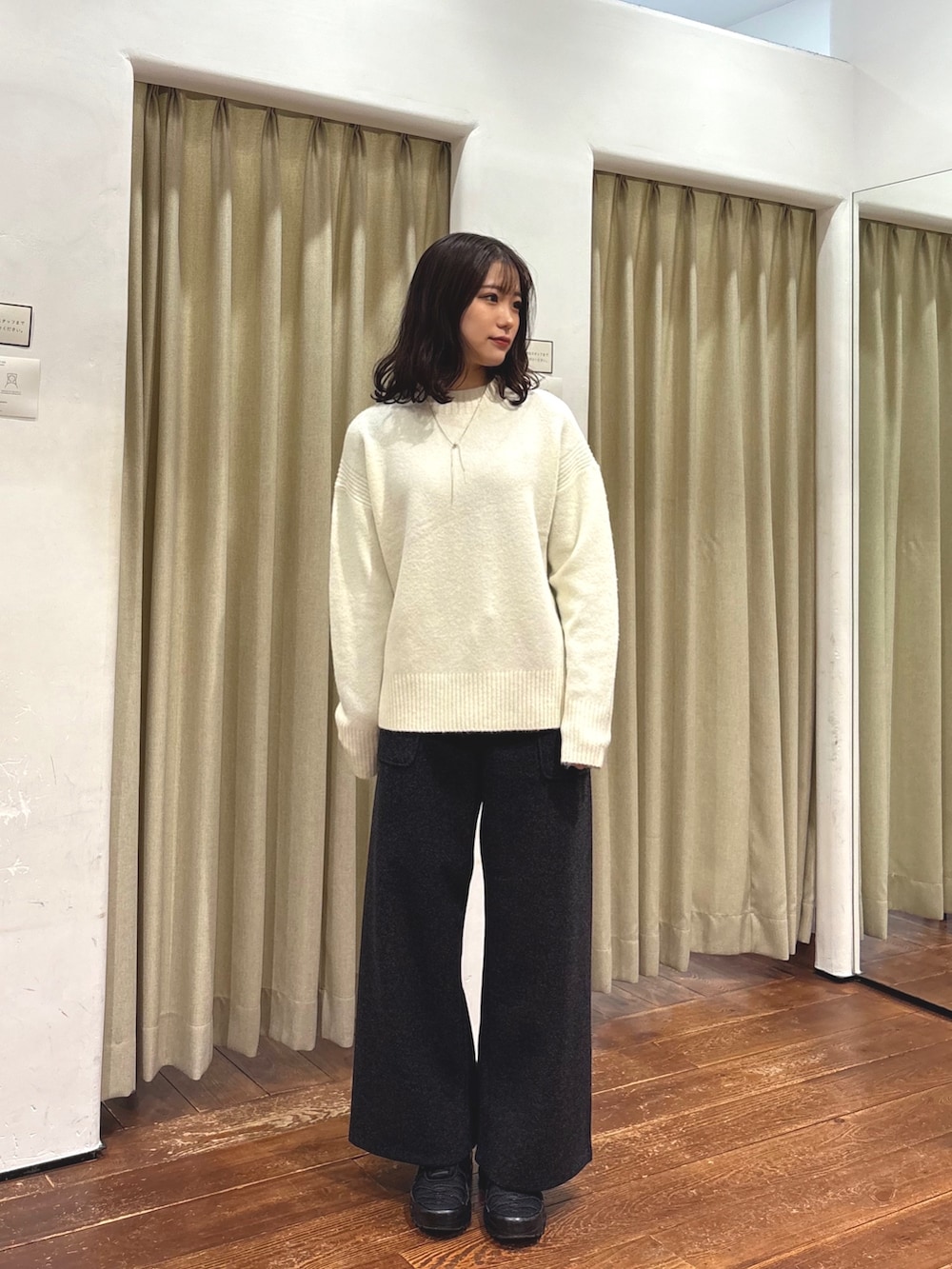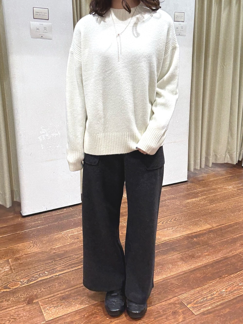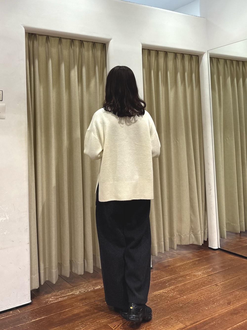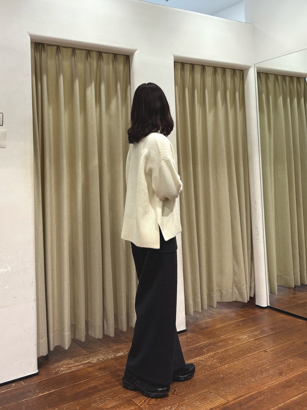ニットは程よいハイネックで生地感も柔らかく着やすいです。サイドスリットが入っており、1枚でも様になります。