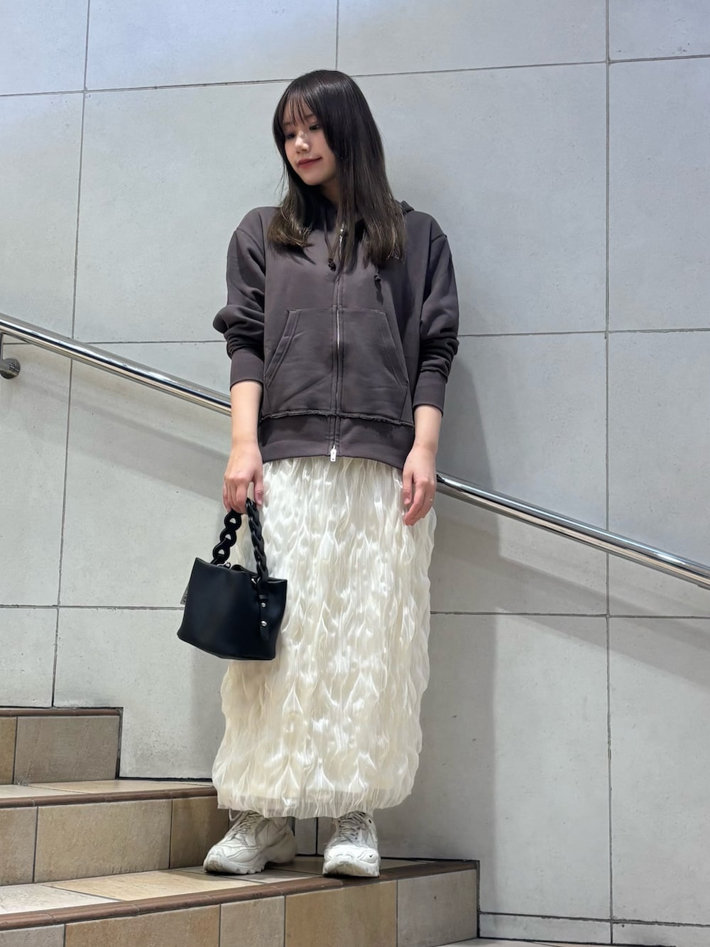 パーカーは程良い色味でルーズになりすぎず綺麗めなアイテムとも相性抜群です!