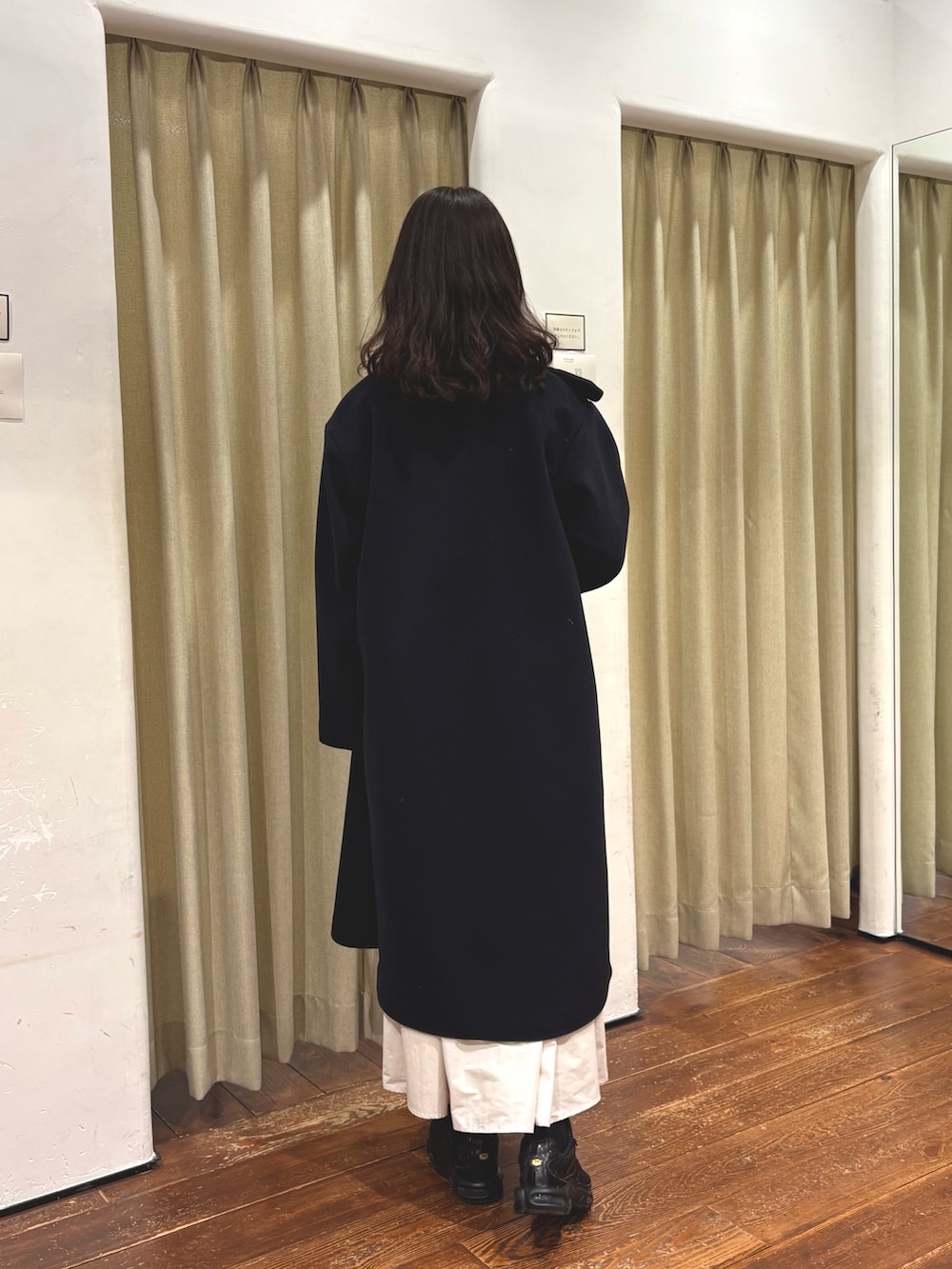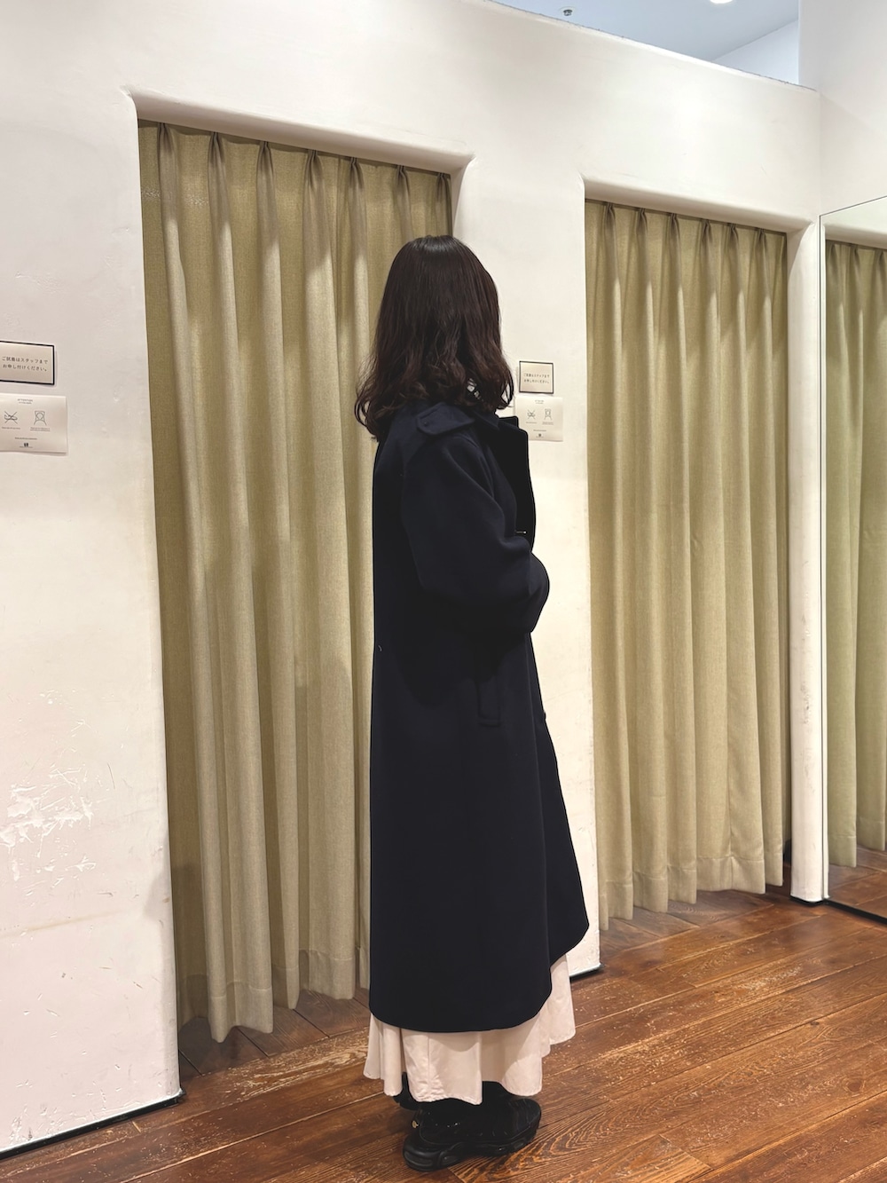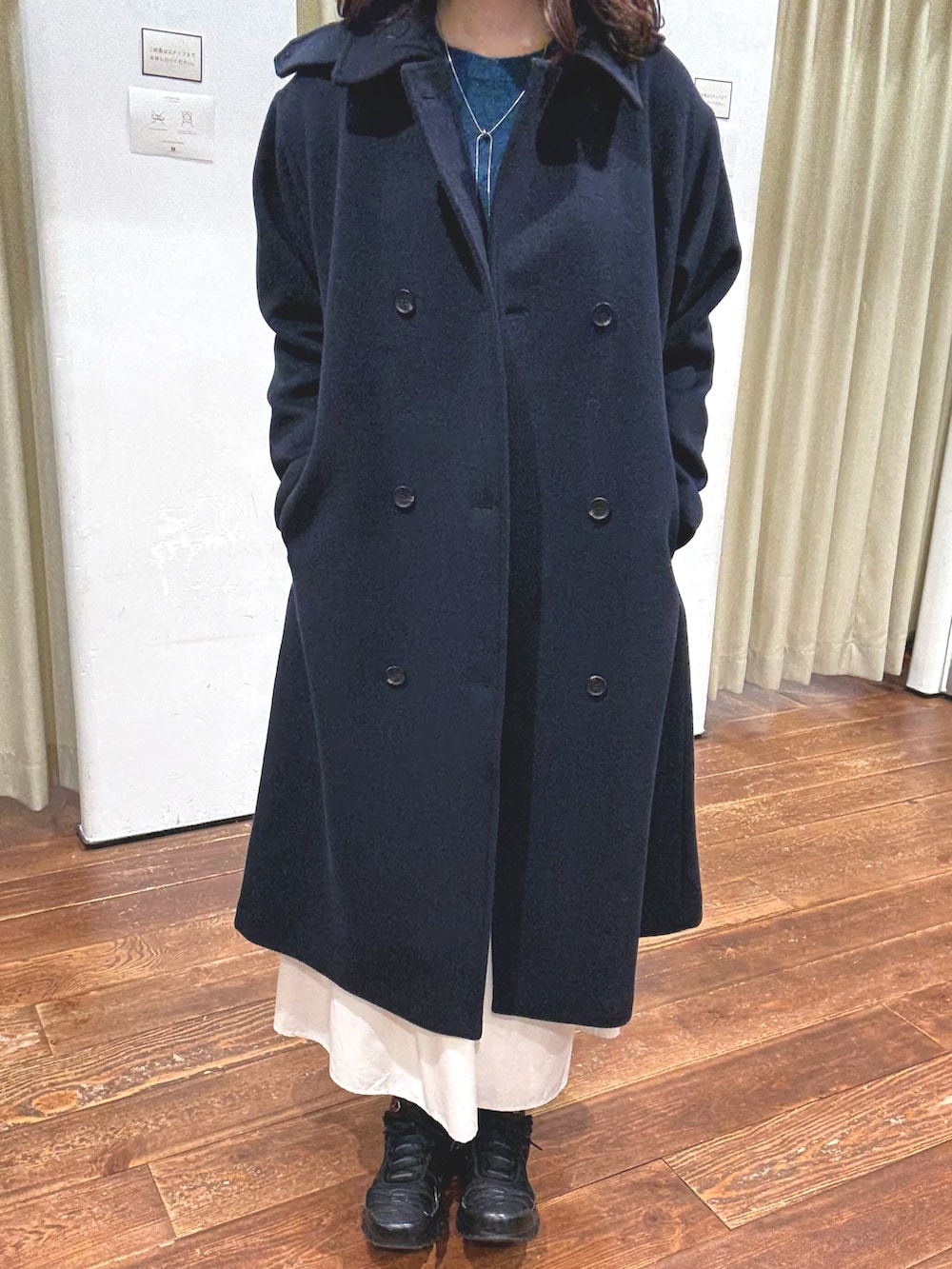 アウターは襟を折っていただいても、スタンドカラーとしても着ることができ、ロングコートながら軽くて着やすいです。