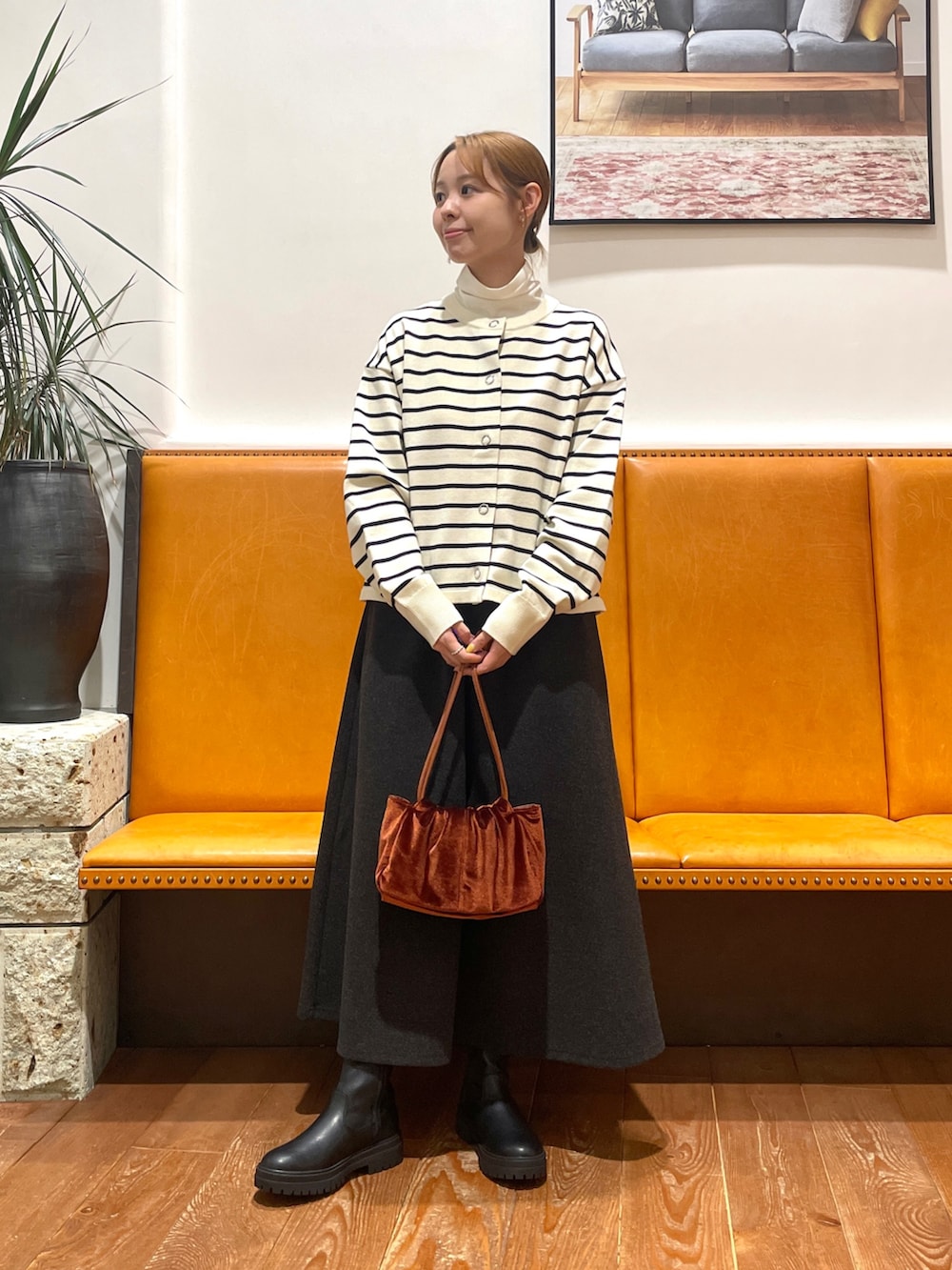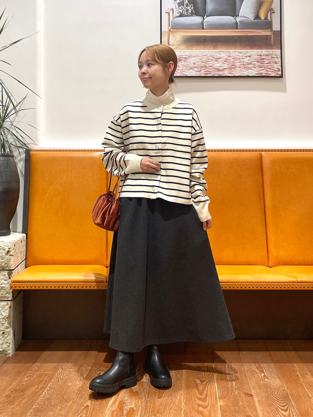 カーディガンはスッキリとした丈感でフレアスカートやワイドパンツとの相性も良いです◎
