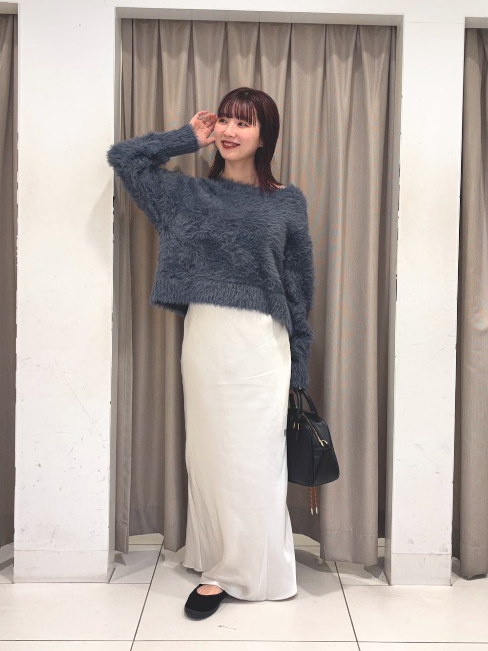 一見カジュアルなロゴニットもチュールの素材感が可愛いスカートと合わせることでバランスの取れたコーデになります🙆♀️