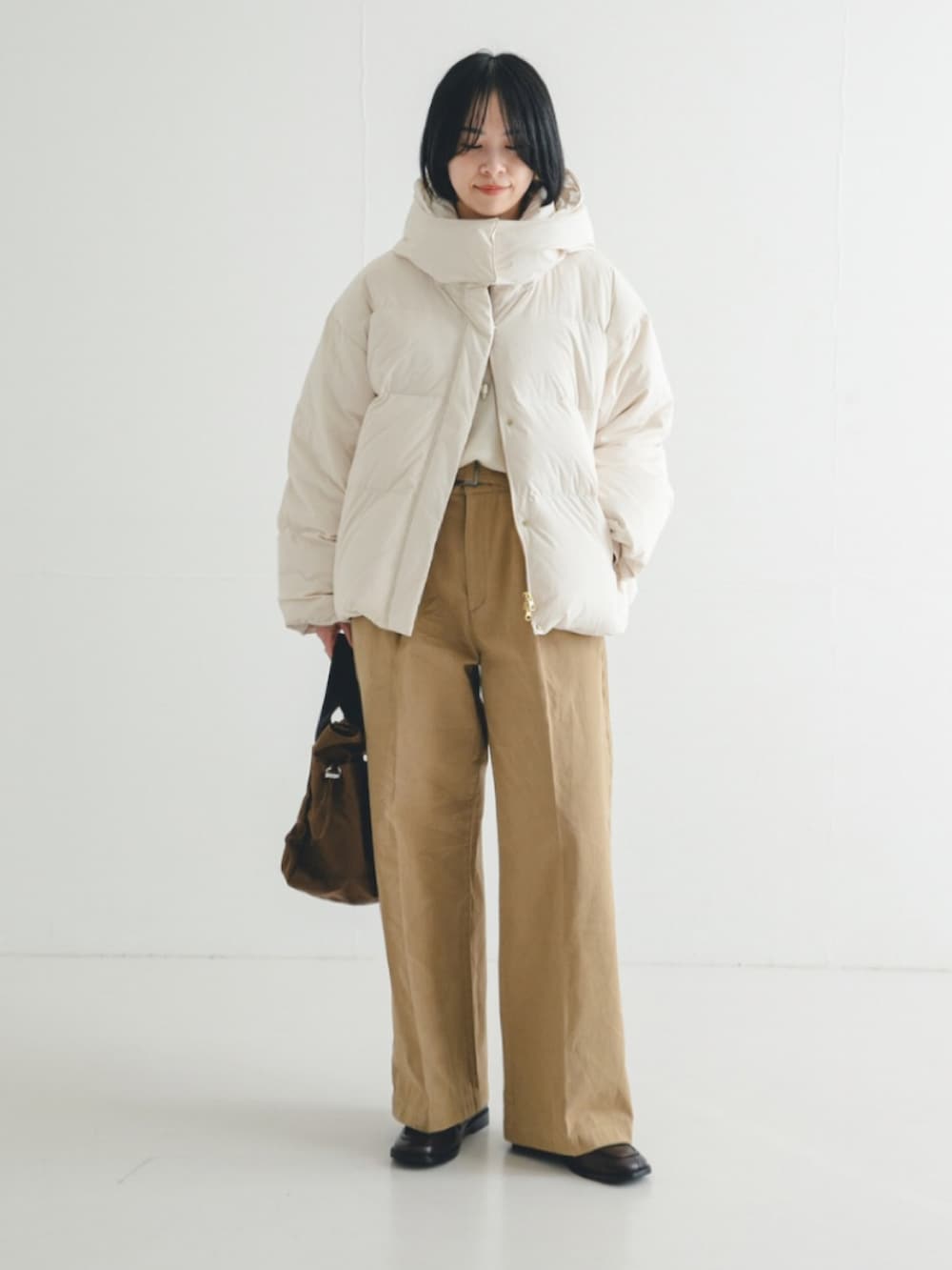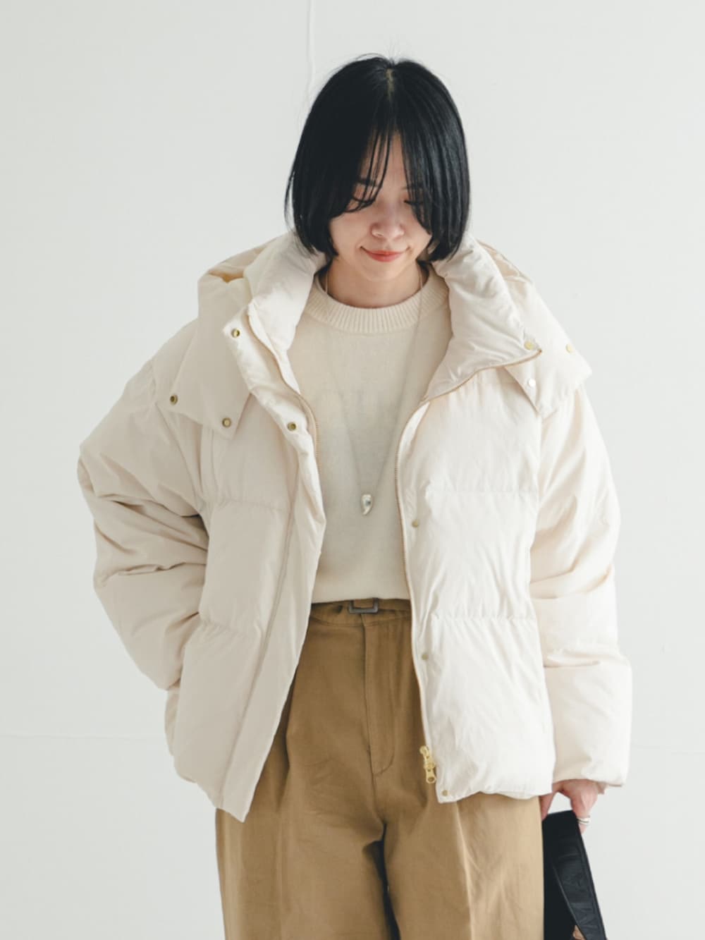 ファスナーや金具をゴールドにすることで、カジュアルすぎず上品な印象に。ダウンパックのボリュームを抑えたデザインと、光沢のない生地感が特徴です。スポーティーになりすぎず、ダウンが苦手な方にもおすすめです。
