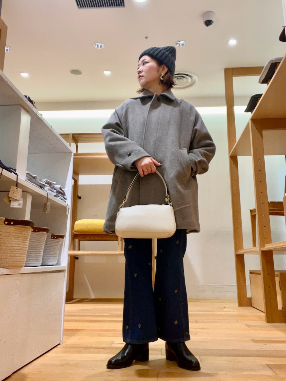 ストールを垂らしコーディネートのアクセントに‼︎