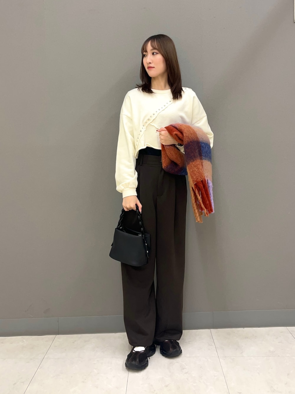 スタッズトップスはコンパクトな丈感なので、ワイドパンツや、ハイウエストのボトムスと合わせていただくことでスタイルアップになります⭕️