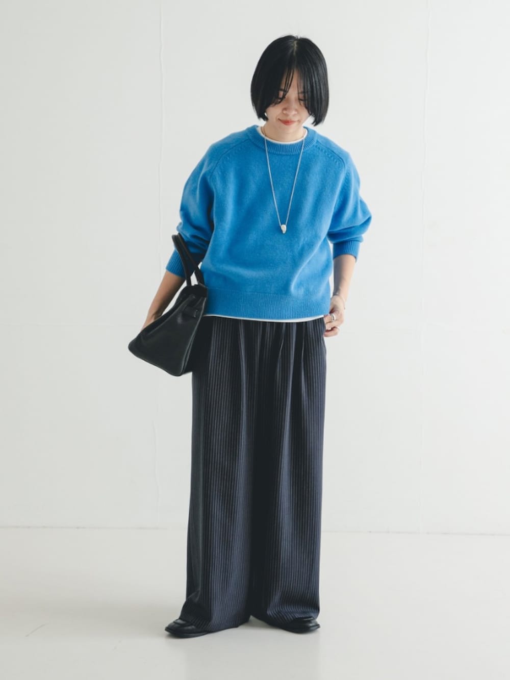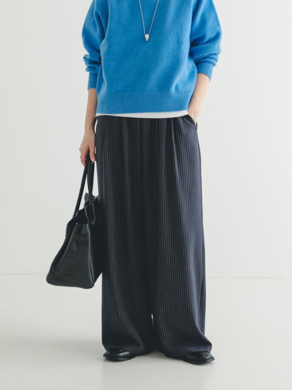 ニットやシャツと合わせればオフィスシーンにも、カジュアルなトップスと合わせれば普段使いにも。