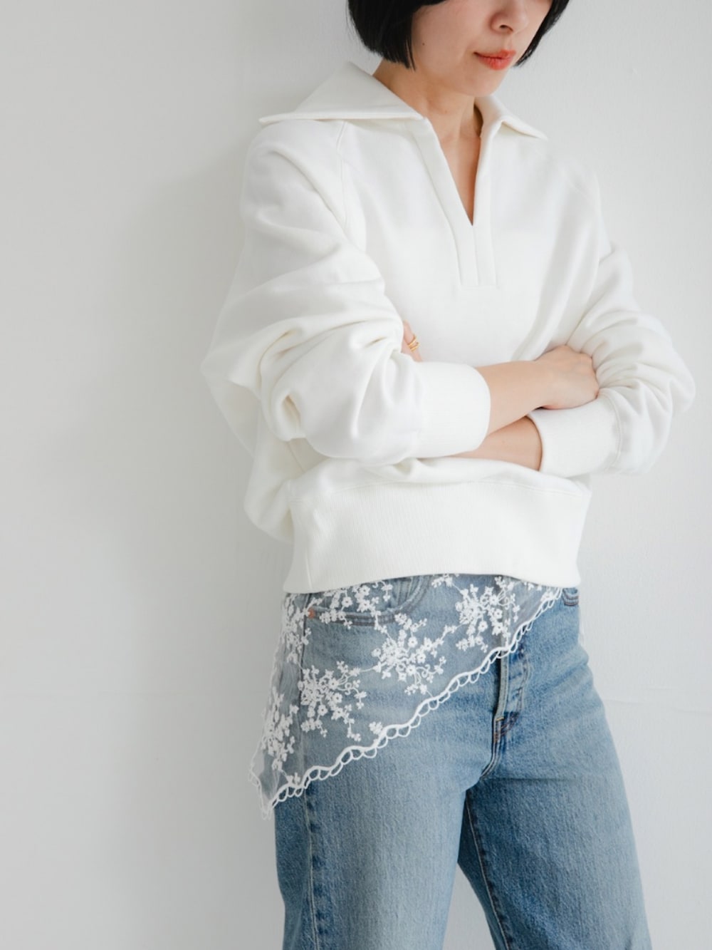 大人な抜け感を演出する、セーラーカラースウェット。