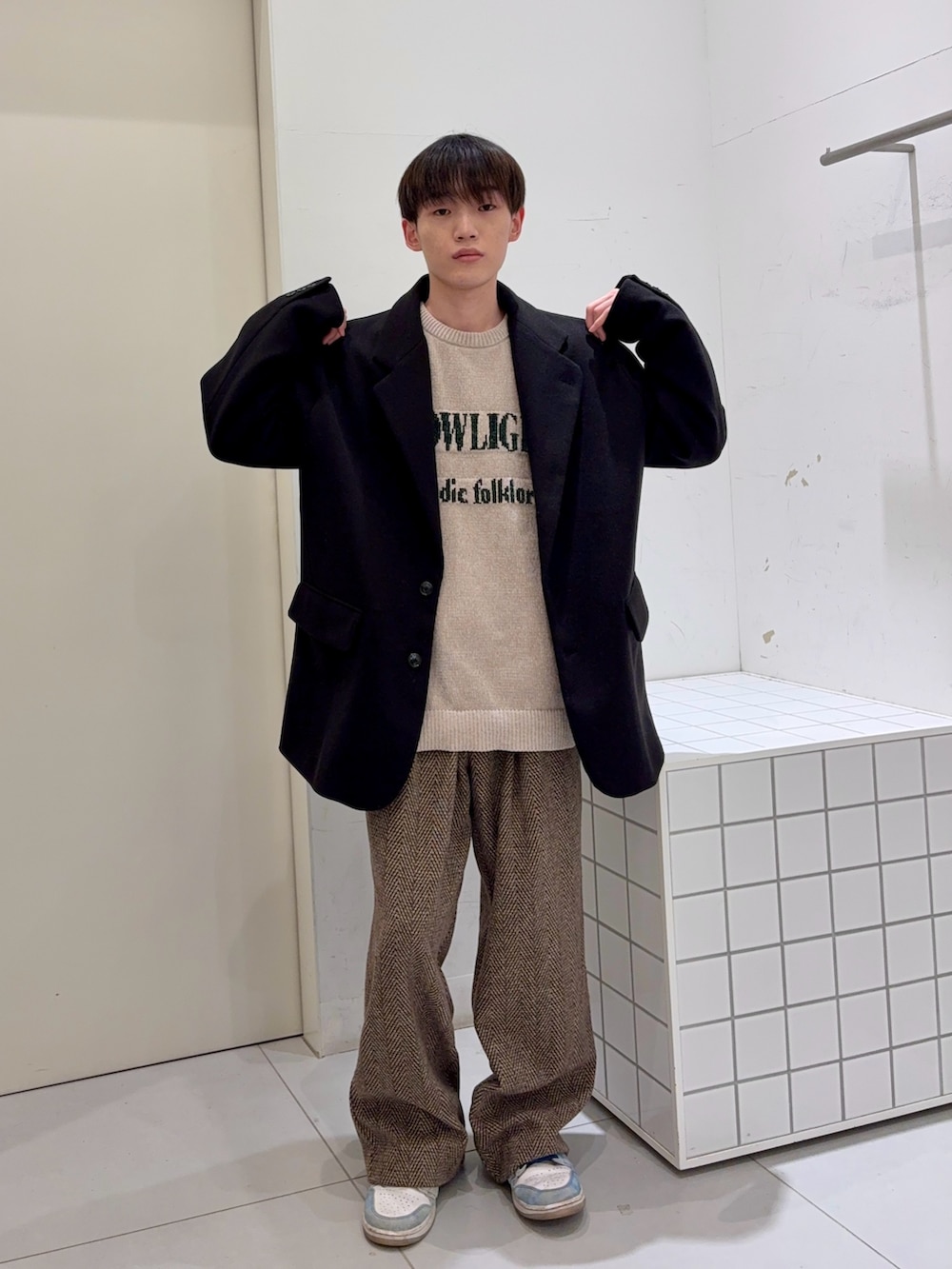 今回はワイドスラックスと合わせてシティーボーイ感を出しています。