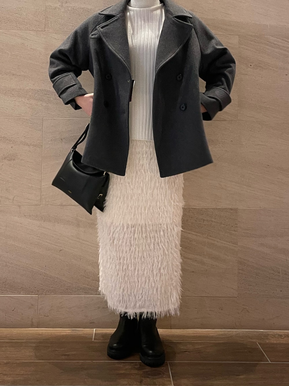 王道に可愛いPコート。保温性が高く上品な見た目でシルエットが綺麗。