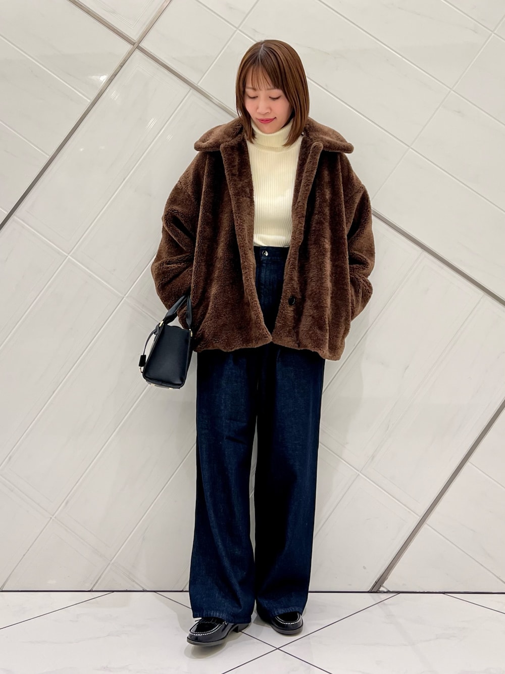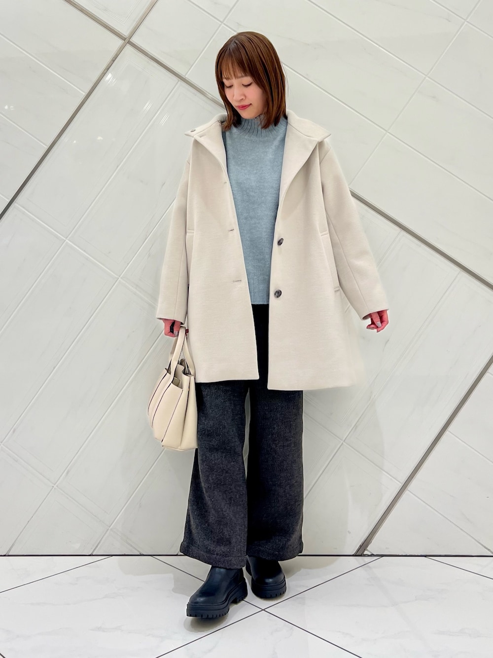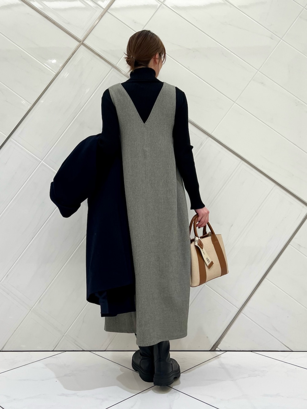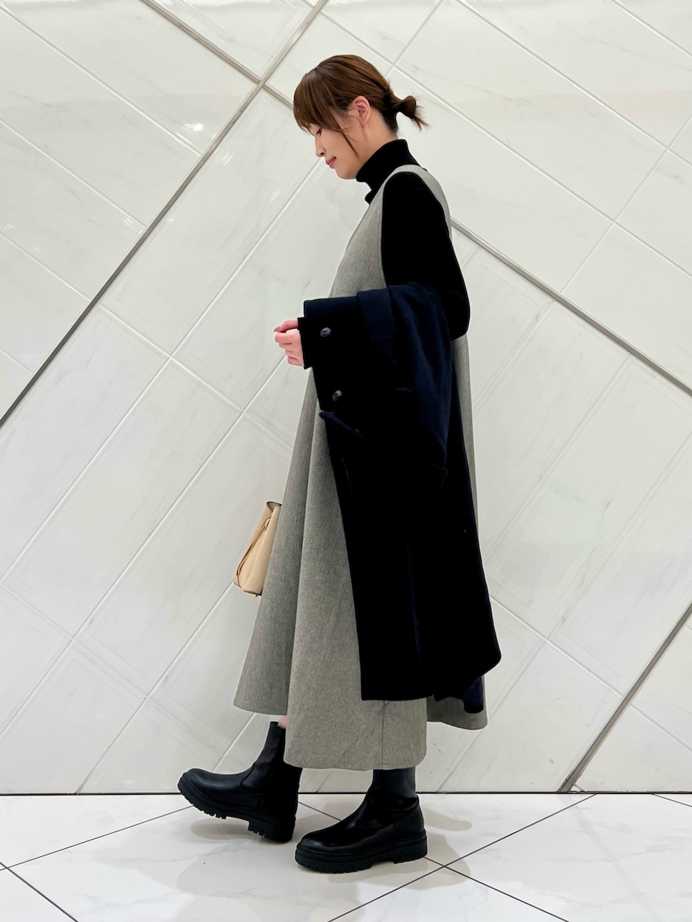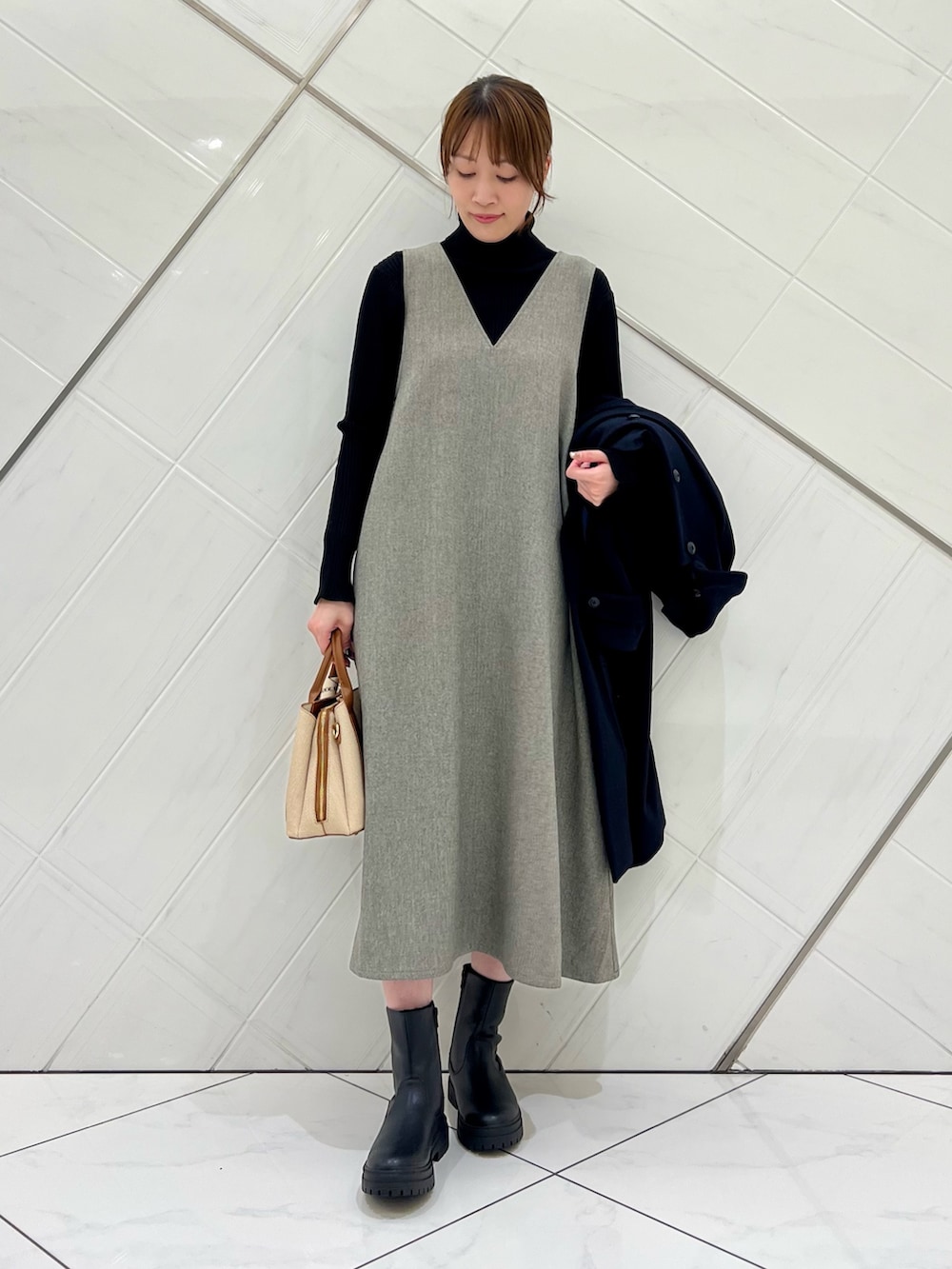 161cmで脛くらいの着丈です。合わせるインナー次第で