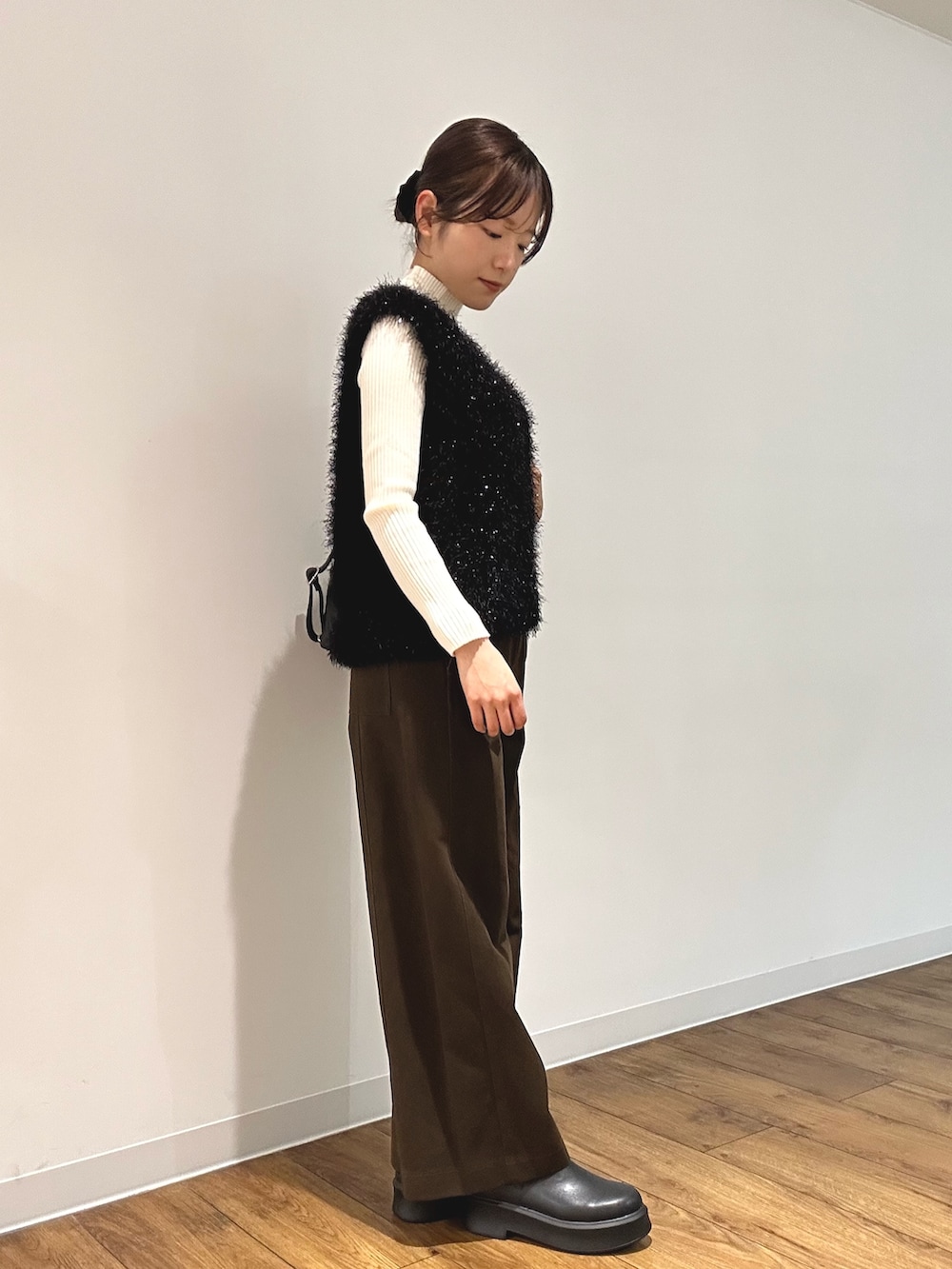 大人気のモールフェザーニットベストを使ってワントーンコーデに^^