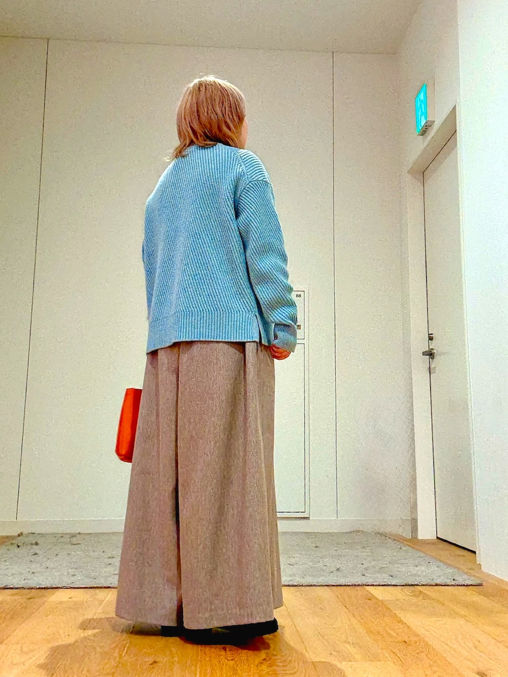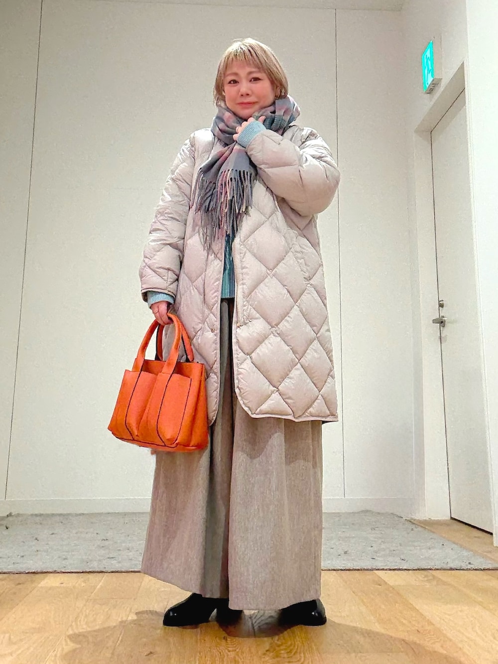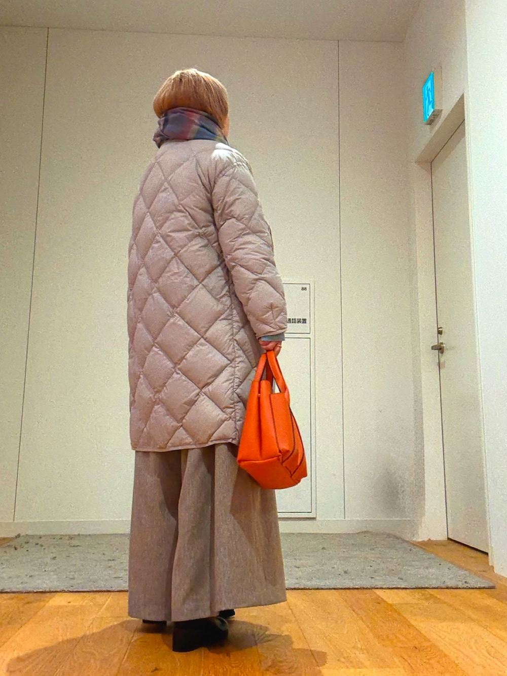 薄いロングコートですがしっかり暖かく、また気温が低いときはさらに上からアウターを重ねても着膨れすることがなくキレイに着用できます♡