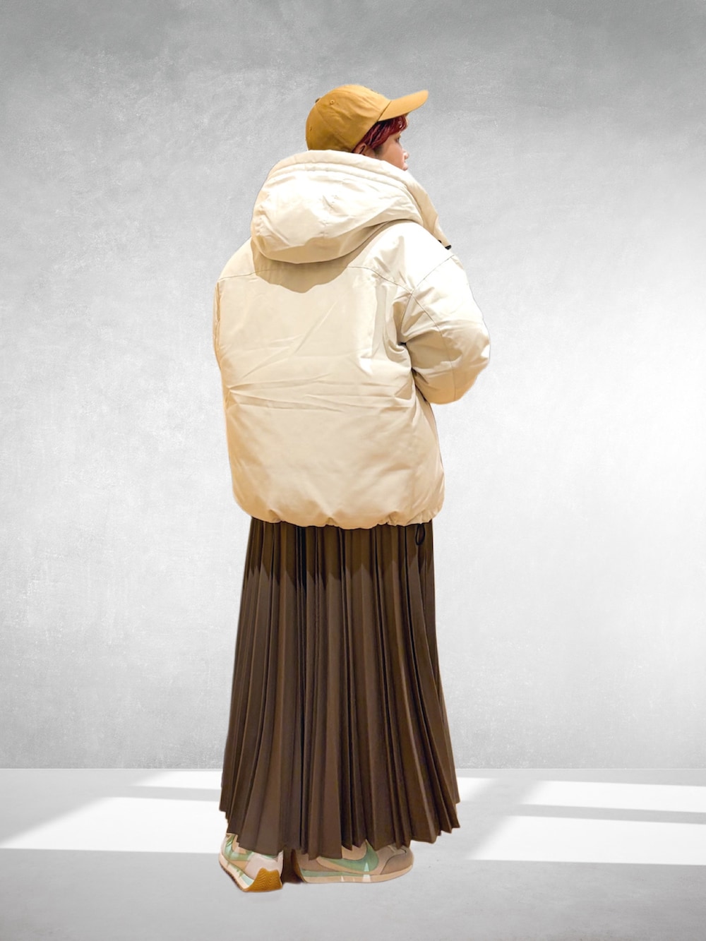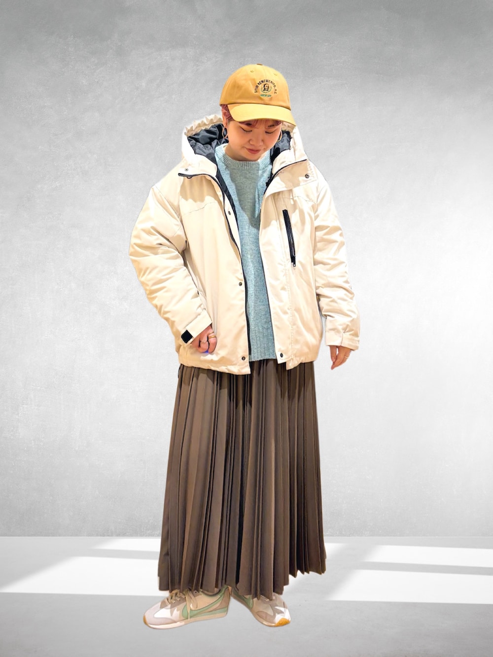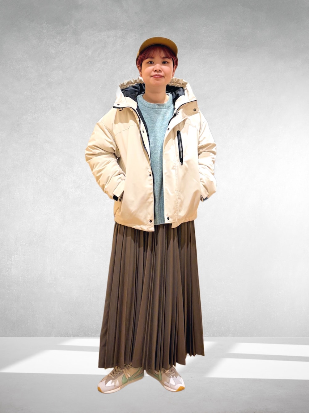 今回はスカートにカジュアルなスニーカーで。