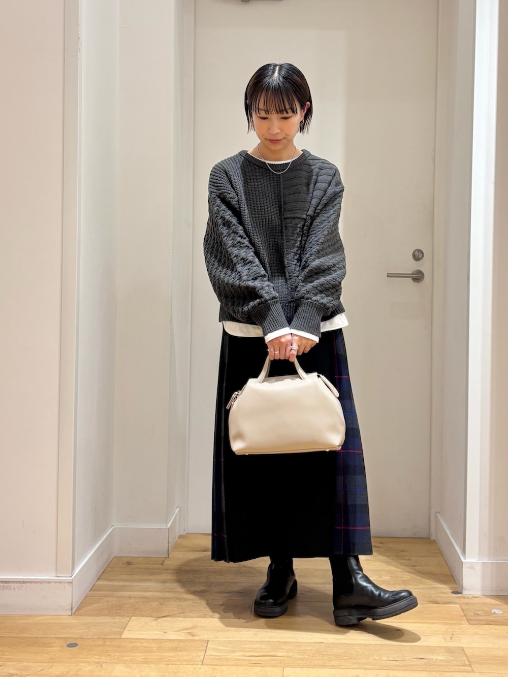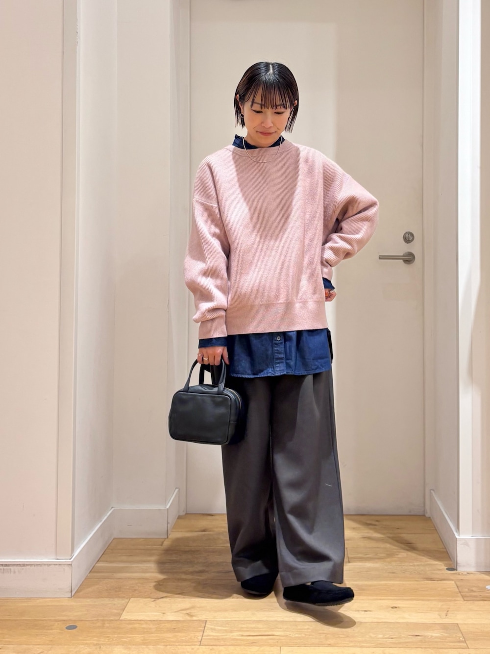 着丈が短めなのでシャツやカットソーと合わせたレイヤードもオススメです◎