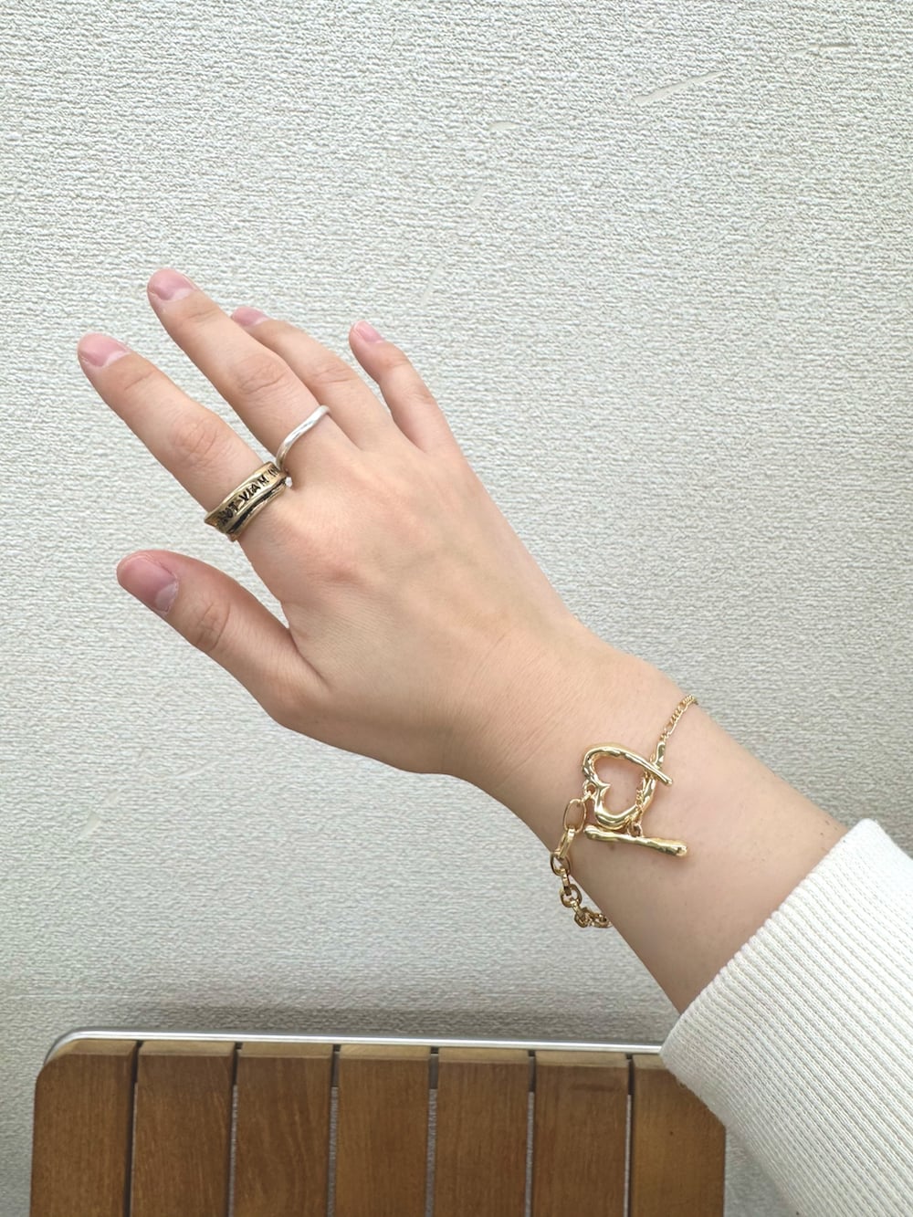 ヴィンテージ風のロゴリングは中々ないデザインでセットのシンプルなシルバーリングと合わせると手元が一気にお洒落になります💍
